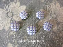 【19世紀 アンティーク シルク製 くるみボタン ラベンダー&ホワイトの格子柄 15mm 5ピース[AM10178]】