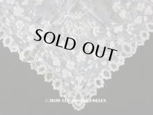 王冠とイニシャル、そして美しいリーフ柄のホワイトワーク(白糸刺繍)が見事な結婚式用のハンカチです。