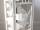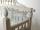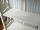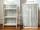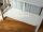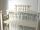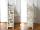 淡いブルーのオーガンジーのカーテンが美しい白い木製のラックです。
