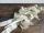 白い花が美しいリボンとレースで束ねられた花嫁のブーケです。