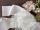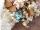 薔薇&鈴蘭&勿忘草の布花がリボンとレースで束ねられた花嫁のブーケです。