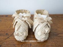 【1900年代 アンティーク 淡いブルー&オフホワイトのツイード生地 ベビーシューズ [AM11386]】