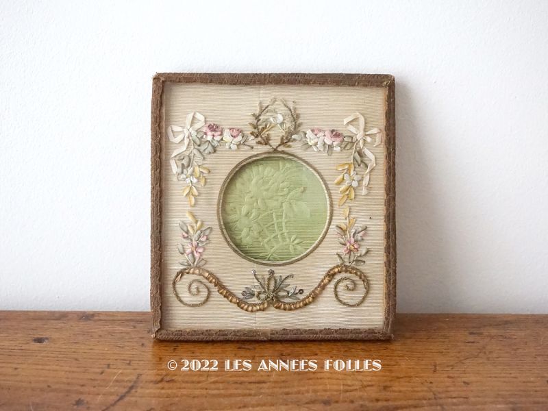 アンティーク リボン刺繍のフォトフレーム  リボン&薔薇のガーランド [戻る]