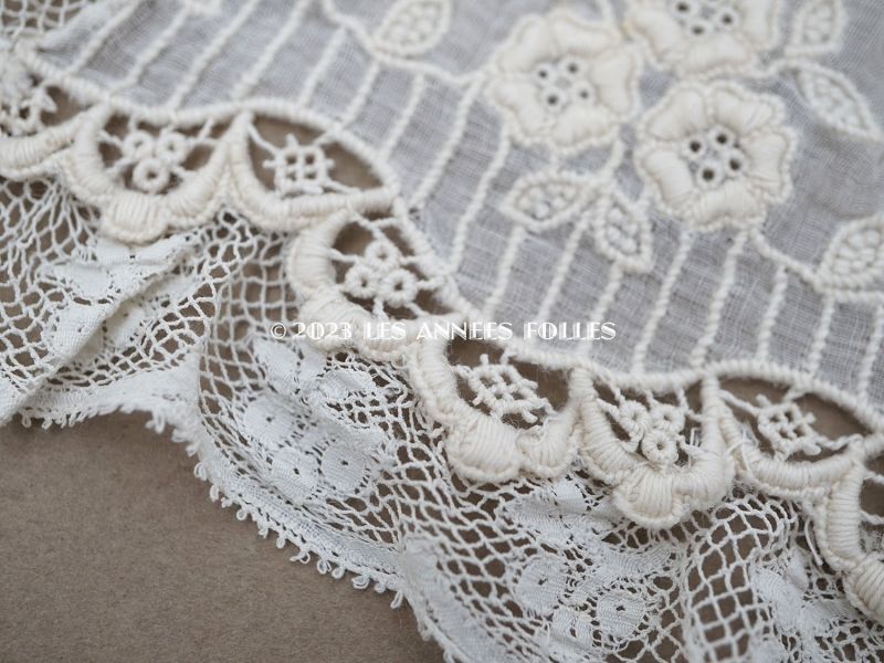 アンティーク フリルレース オフホワイト 花刺繍 24.5×10.5cm  [戻る]