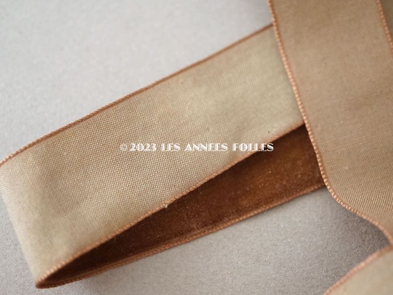 アンティーク シルク製 ベルベットのリボン ブラウン 8.45m〜9.65m 2.7cm幅 [戻る]