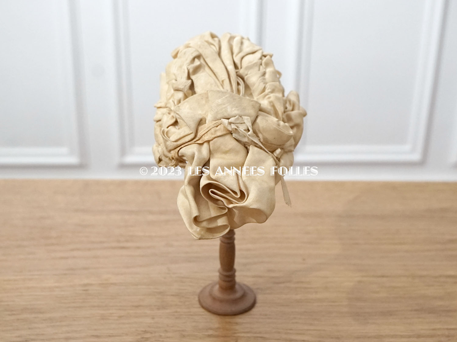 19世紀末 アンティーク 小さなドールハット エクリュのシルクサテン [戻る]
