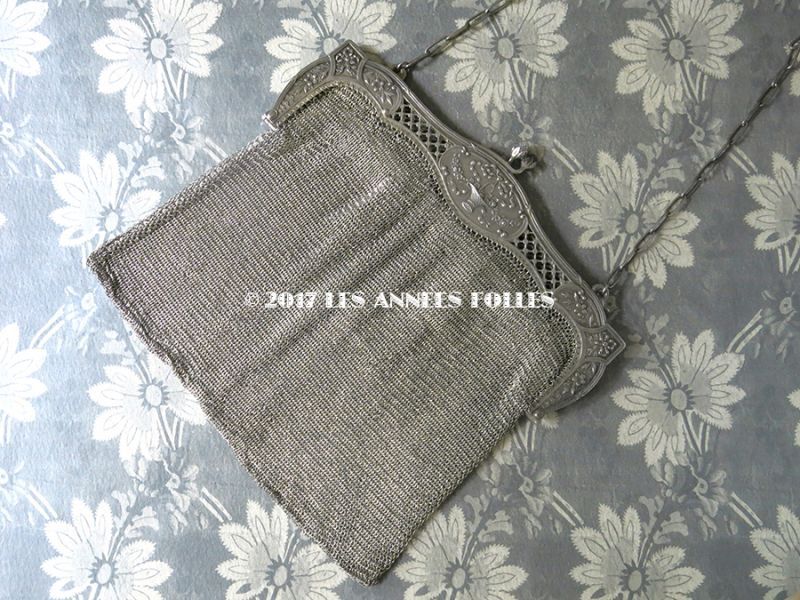 1900年代 アンティーク シルバー製 メタルメッシュのバッグ 花かご&薔薇とリボンのガーランド コインケース付 [戻る]