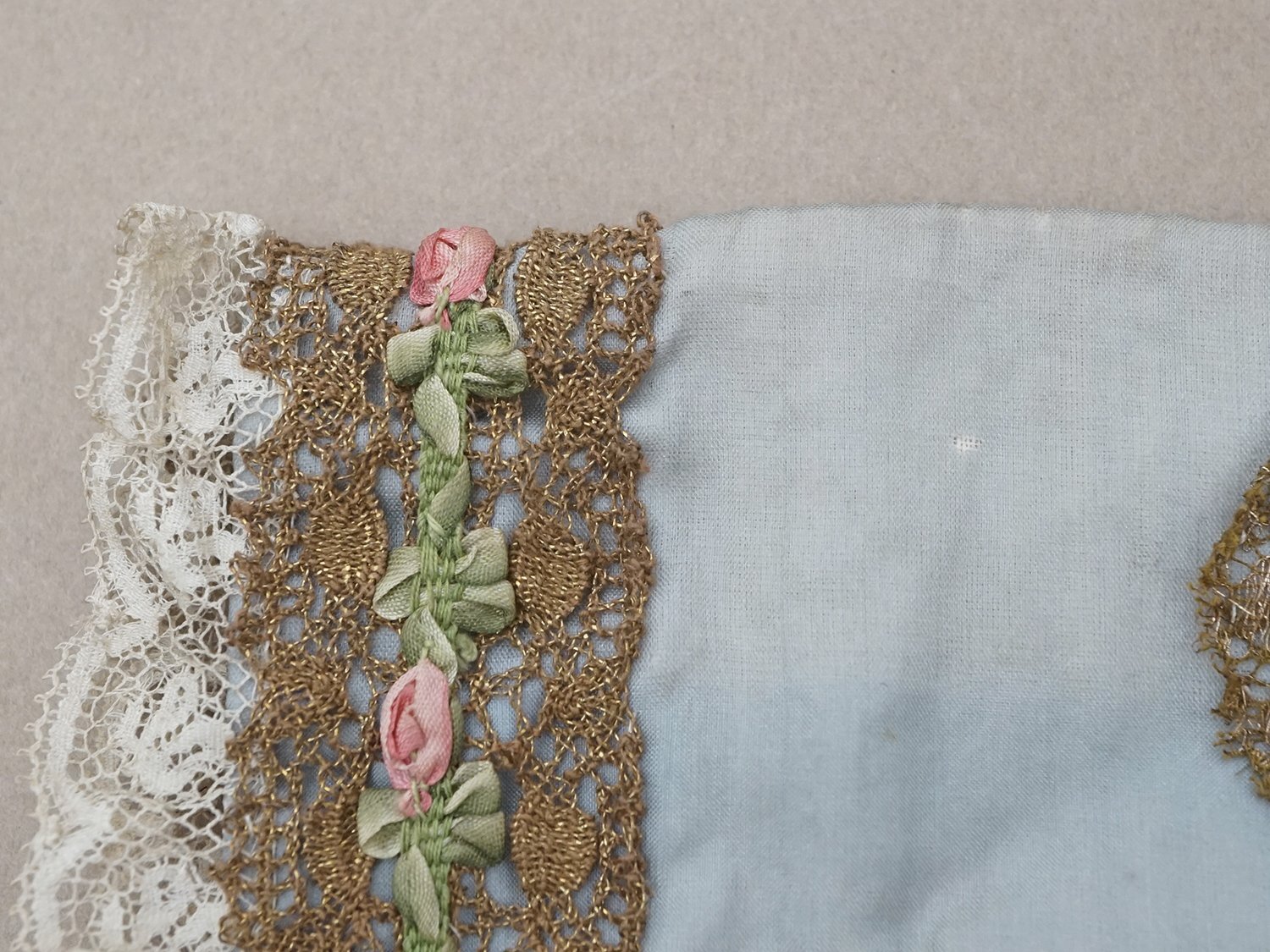 【セール対象外】【クーポン対象外】アンティーク シルク製 ポシェット ロココトリム&モチーフ スモーキーブルー ランジェリーケース [戻る]