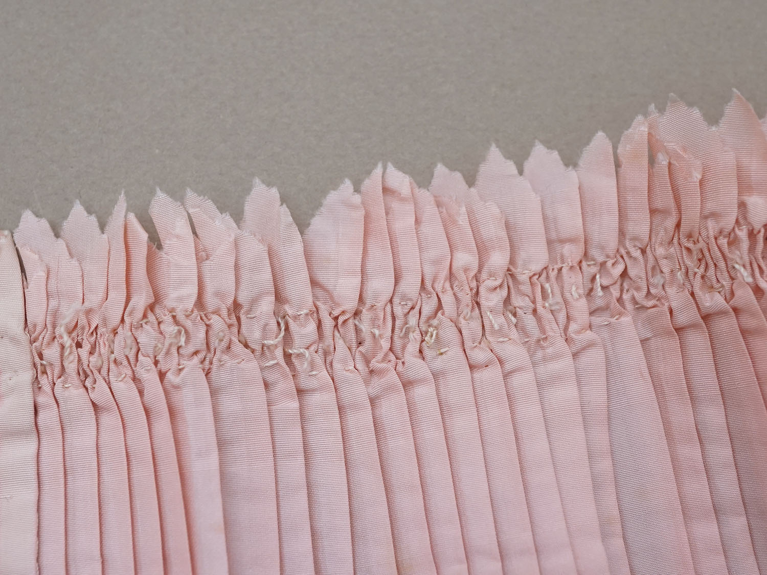 19世紀末 アンティーク ベビーピンク シルク製プリーツ ドレスの裾 2m 幅14cm [戻る]