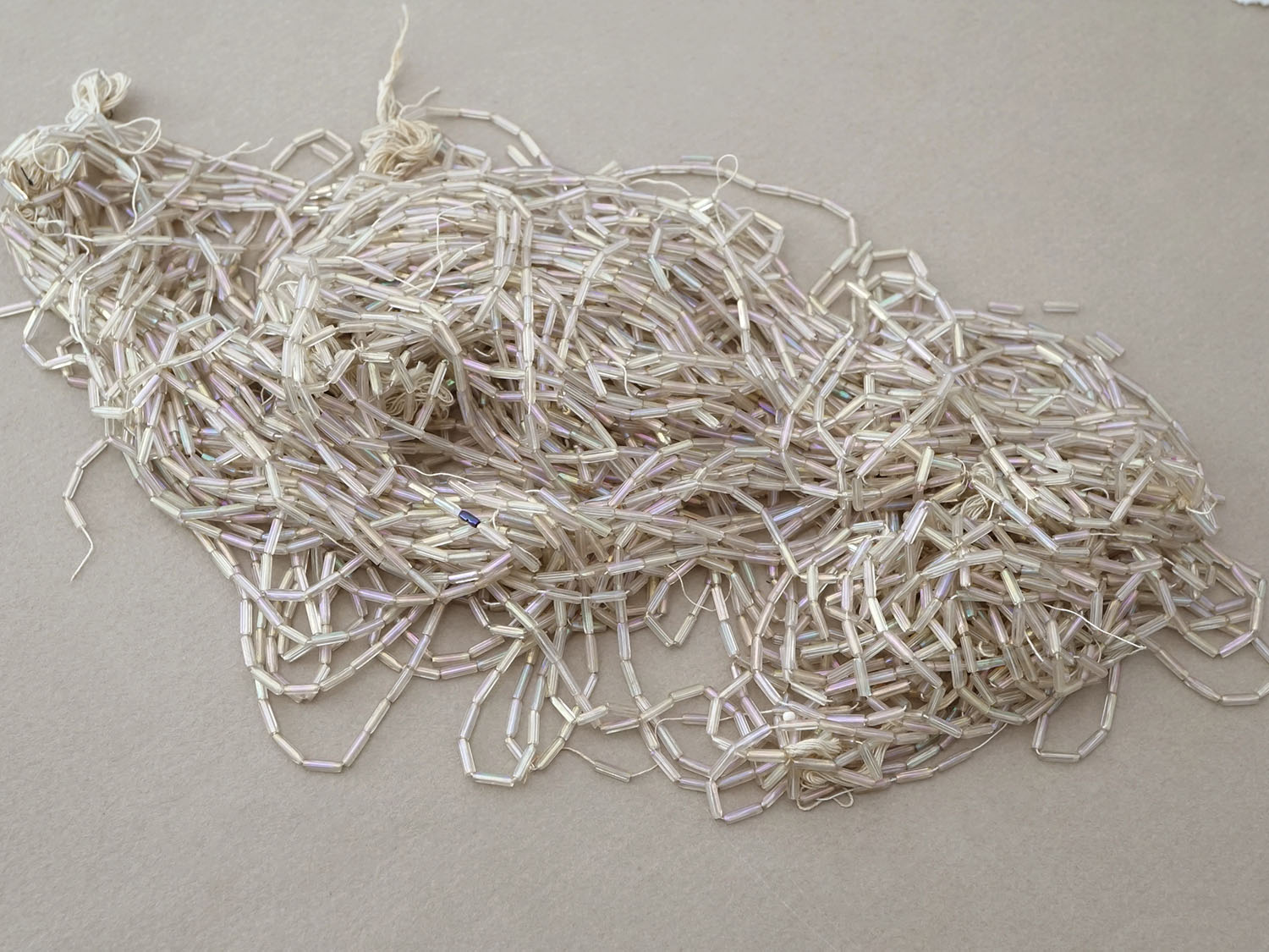 アンティーク スフレビーズ オーロラ加工 ライン入り 2×6.5cm ストライプ 146g [戻る]