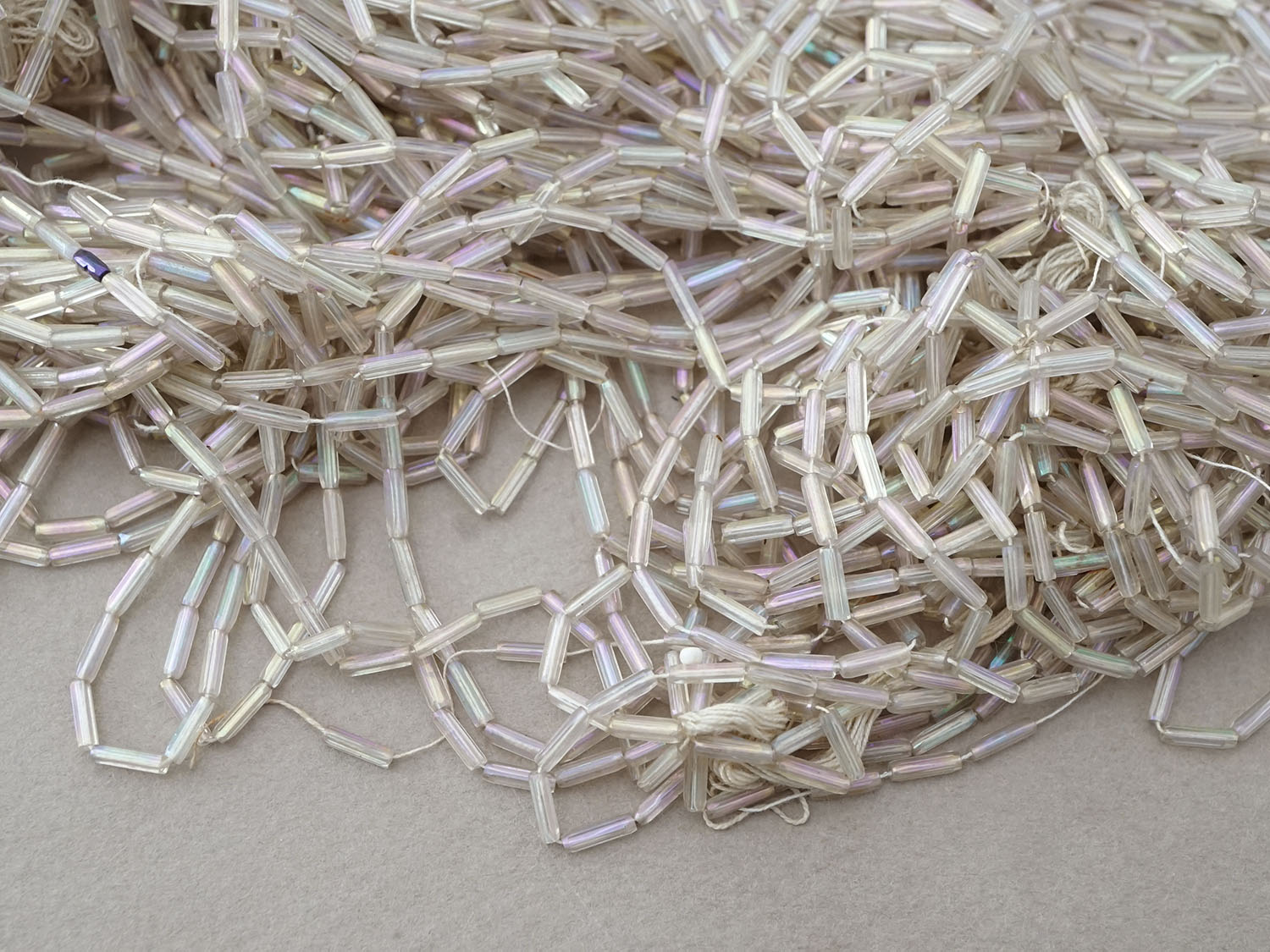 アンティーク スフレビーズ オーロラ加工 ライン入り 2×6.5cm ストライプ 146g [戻る]