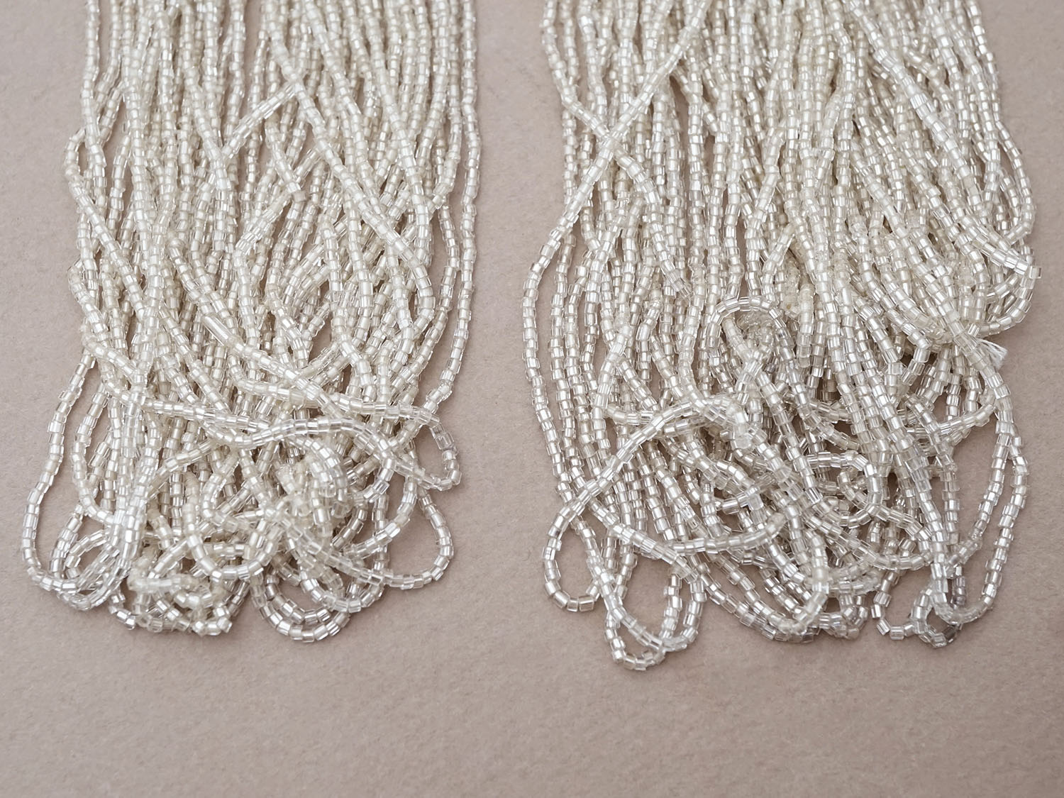 アンティーク シードビーズ クリア&ホワイトシルバー ガラス製 35〜59g 1cm=7粒 [戻る]