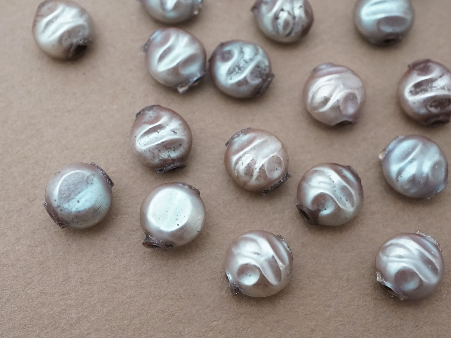 アンティーク サフィレット色 スフレビーズ 9mm 約30ピースのセット 吹きガラス製ビーズ [戻る]