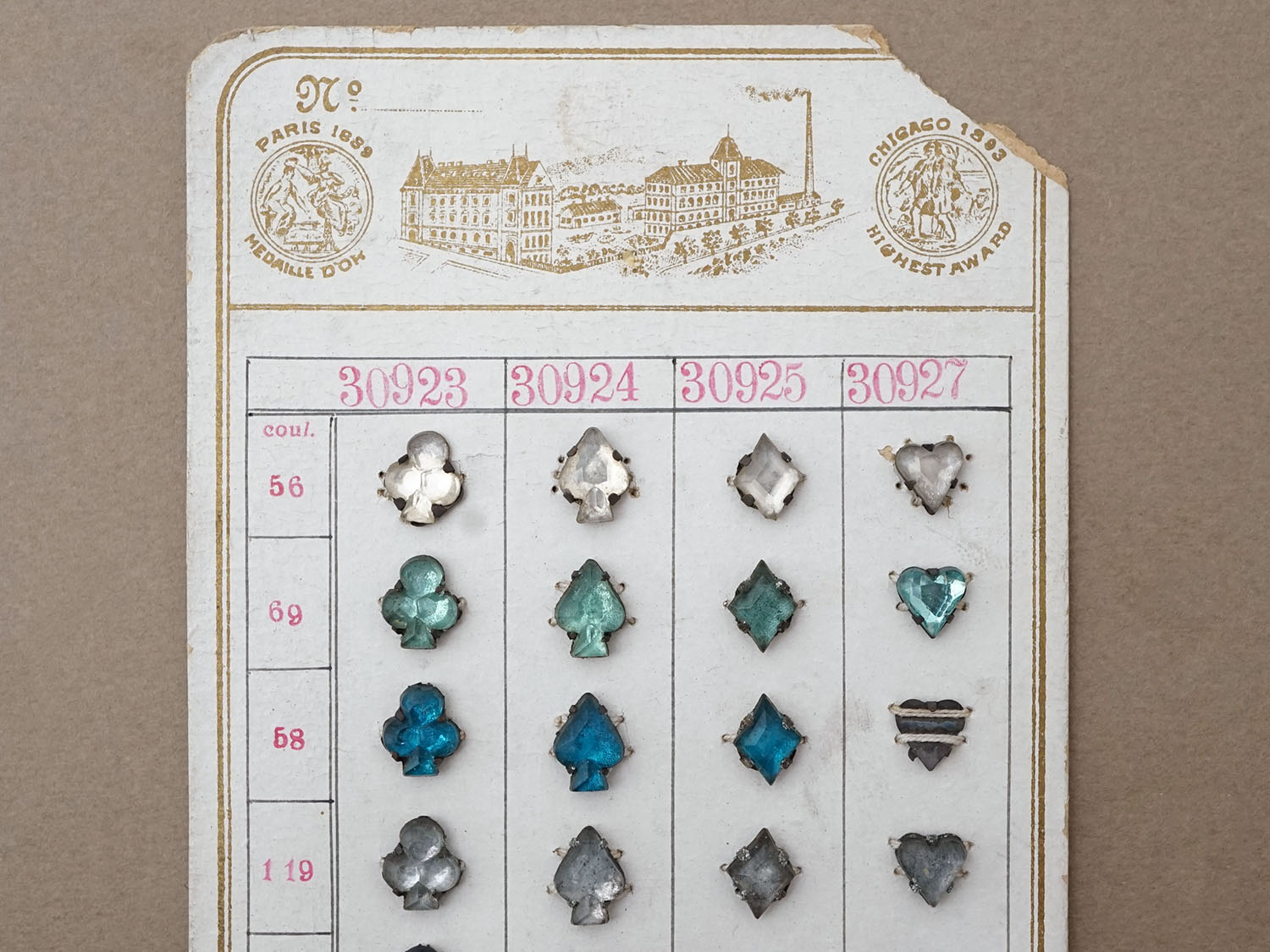19世紀末 アンティーク サンプラー トランプモチーフ ガラスビーズ - AS & JHJS - [戻る]