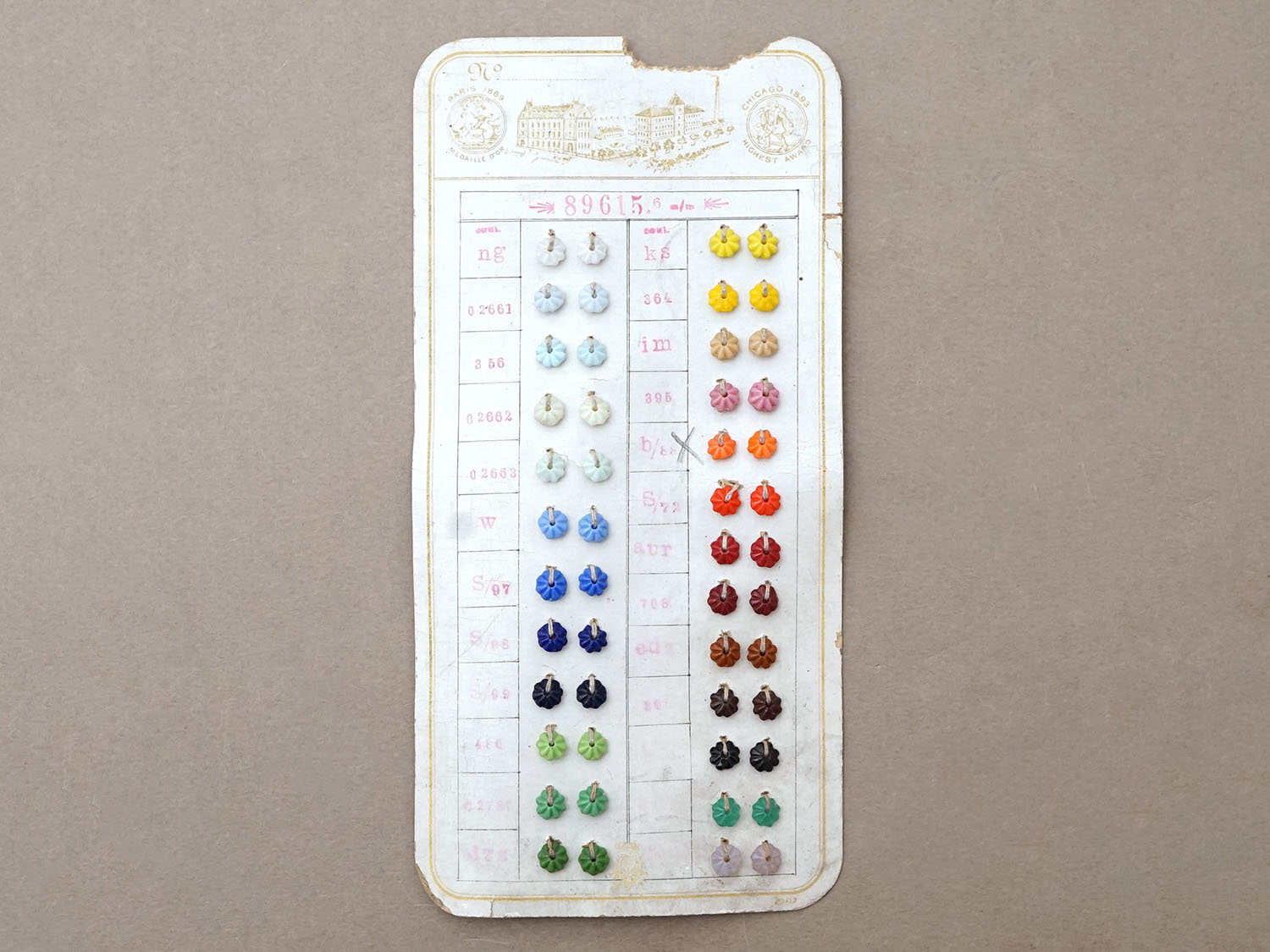19世紀末 アンティーク サンプラー 花型 ガラスビーズ - AS&JHJS - [戻る]