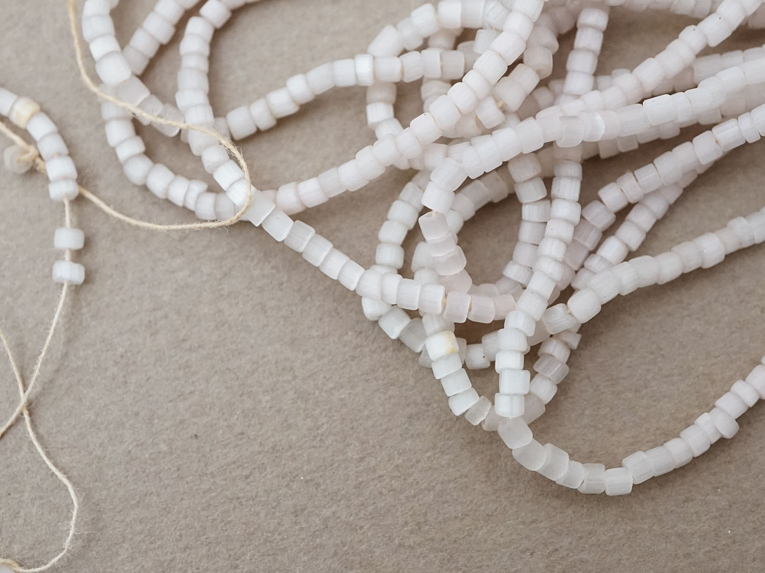 アンティーク ガラス製 サティネビーズ カット入り オフホワイト 2種セット 24g [戻る]