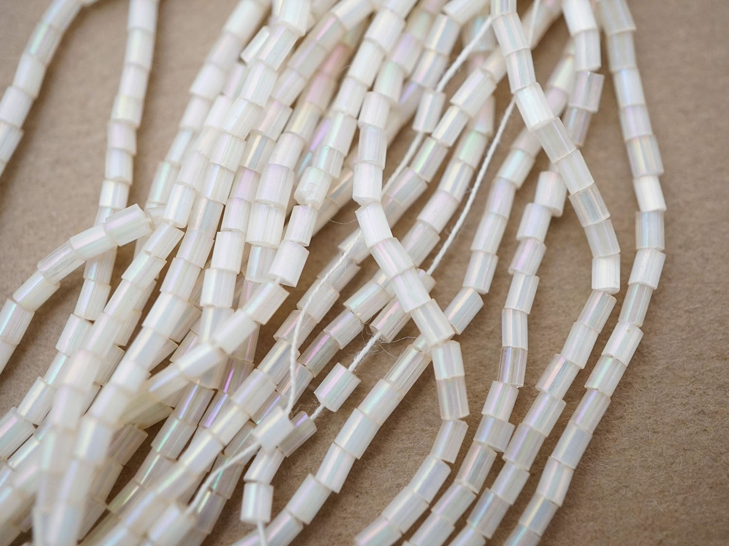 アンティーク ガラス製 オーロラ加工 サティネビーズ ホワイト オーロラ色 1cm=4粒 [戻る]