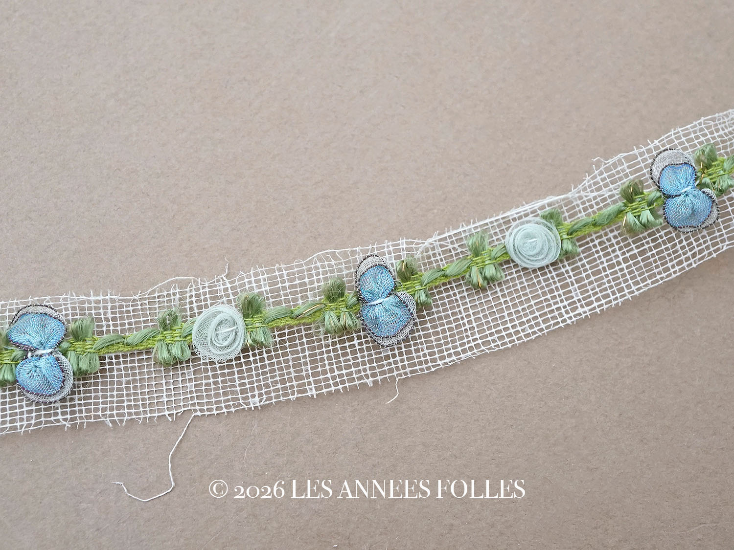 アンティーク シルク製 薔薇のロココトリム パウダーブルー&サックスブルー ロココリボン [戻る]