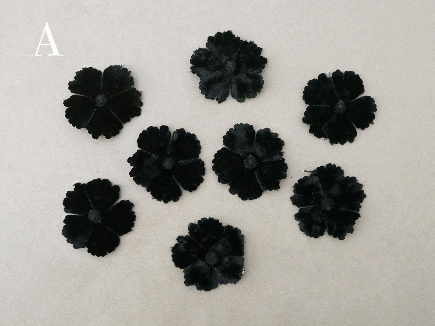 アンティーク 布花材料 ベルベットの花びら 花芯付き 8ピースのセット 約4.3cm 布花 黒 [戻る]
