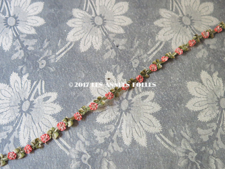 1900年代 アンティーク シルク製 ロココトリム とても小さな朝顔 ピンクオレンジ ロココリボン 1.1m [戻る]