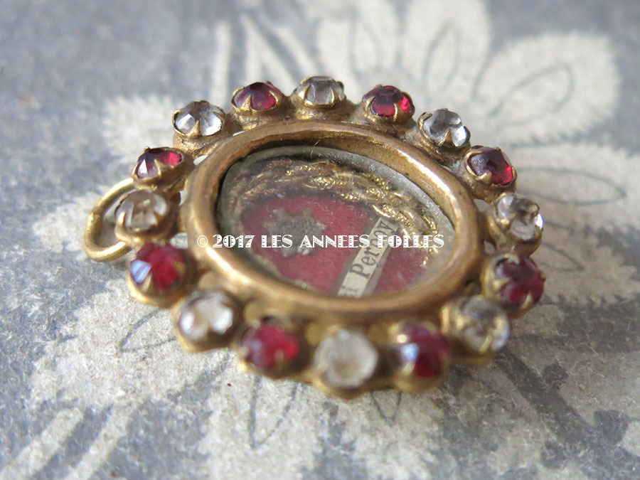 19世紀 アンティーク ルリケール 聖遺物のペンダント 赤と透明のラインストーン 聖人の遺品 [戻る]