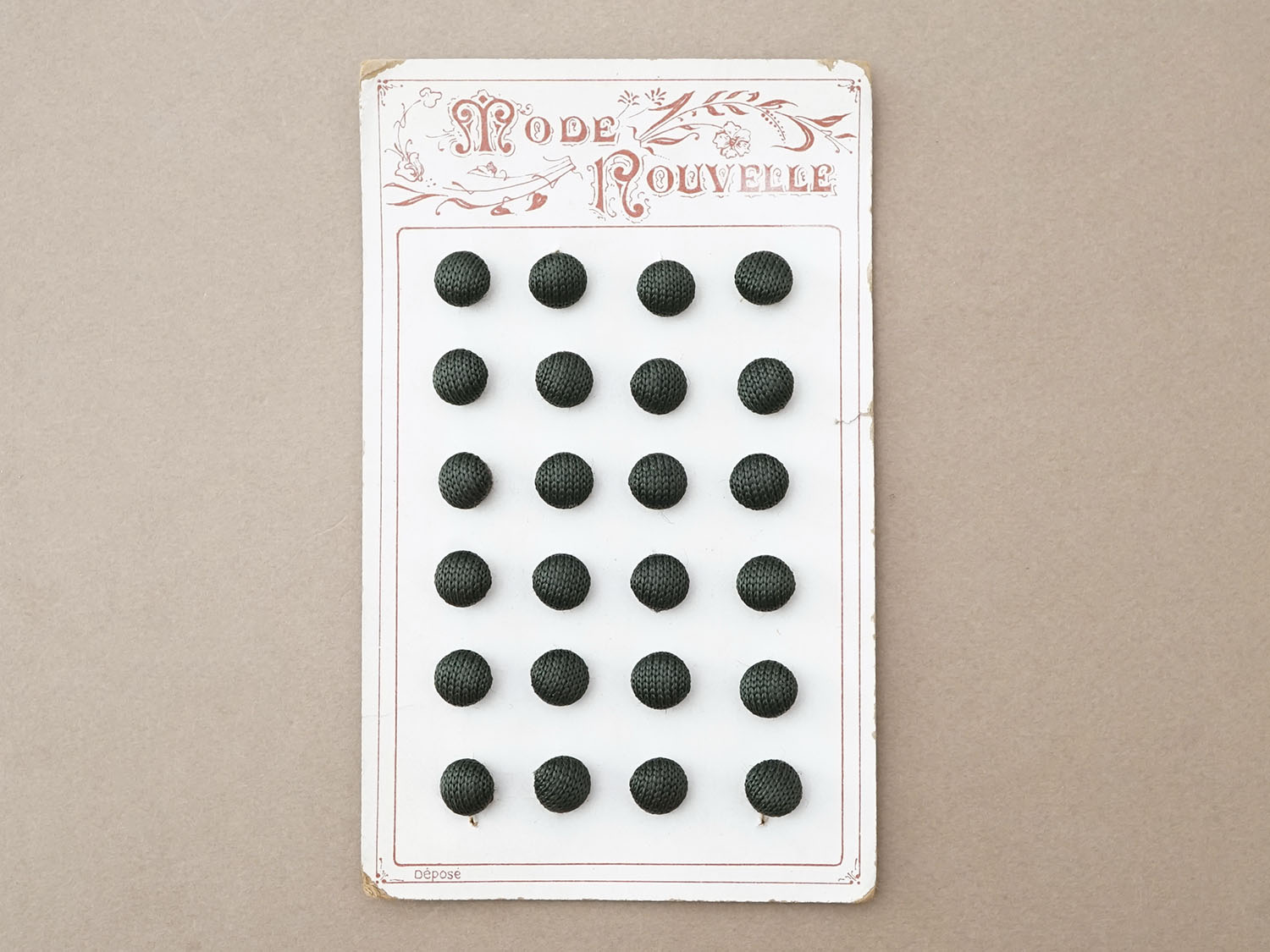 アンティーク シルク製 くるみボタン 11mm 24ピース 深緑 [AM15833]