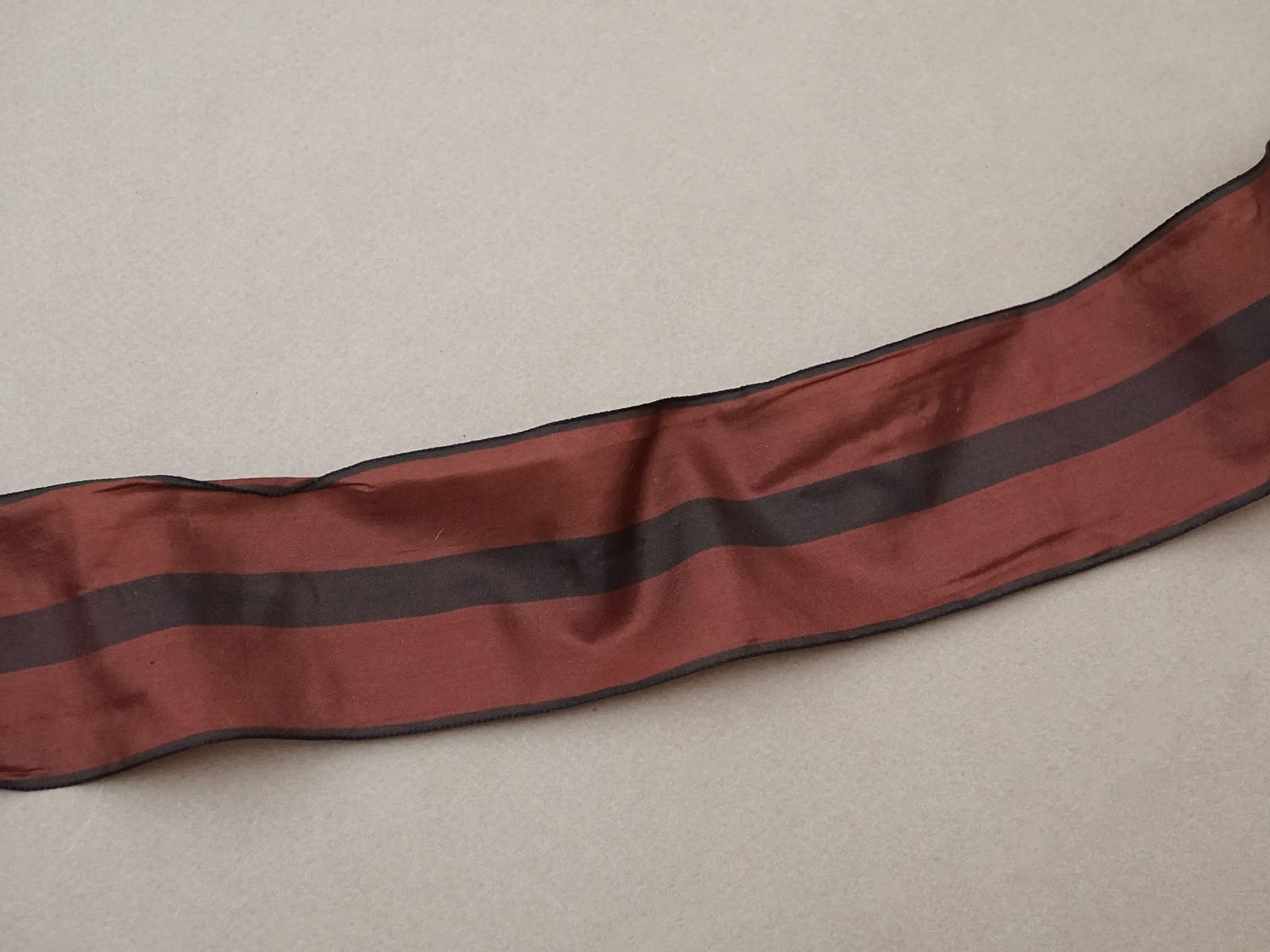 アンティーク シルク製 薄手のリボン ライン入り ブラウン&ブラック シルクリボン