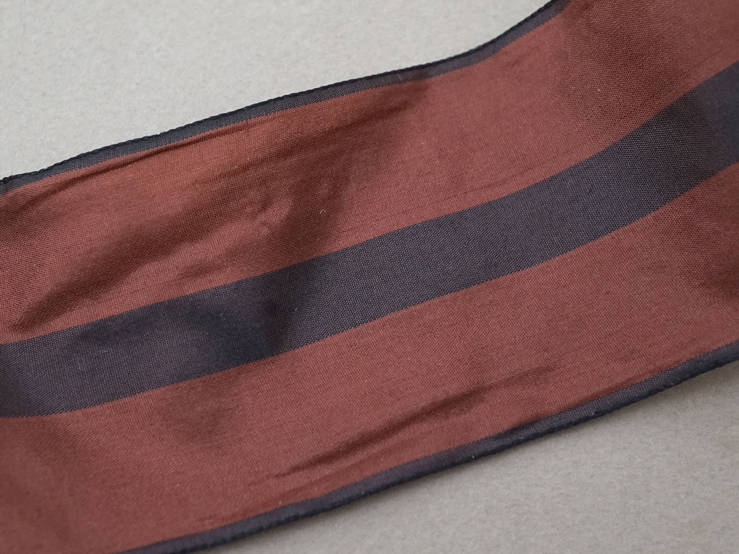 アンティーク シルク製 薄手のリボン ライン入り ブラウン&ブラック シルクリボン [AM15835]