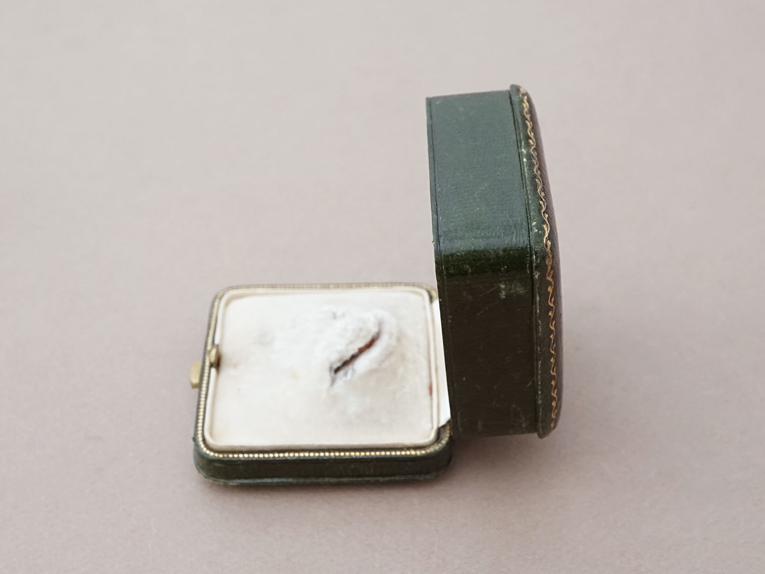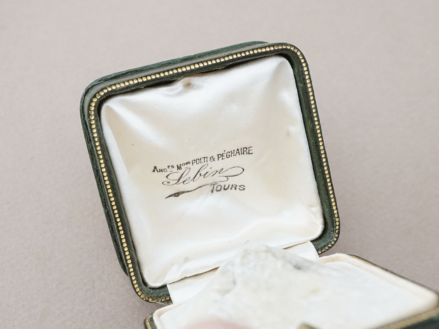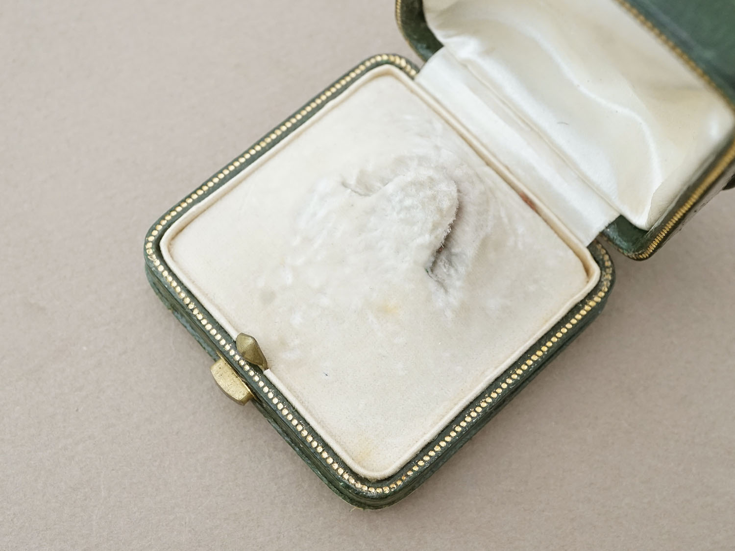 内側はオフホワイトのシルクサテンとごく淡いアイボリー色のベルベットで覆われています。