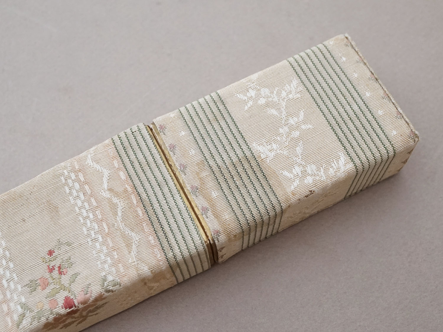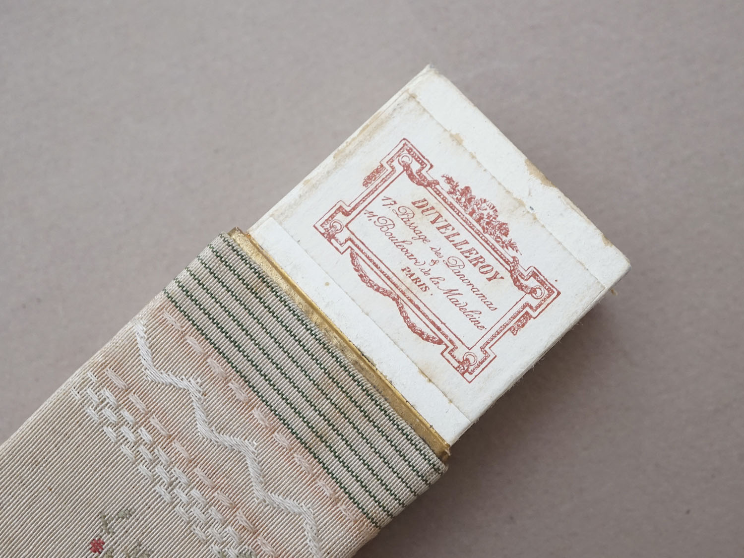 19世紀末 アンティーク メゾン【 DUVELLEROY(デュヴェルロワ)】 のエヴァンタイユ(扇)のシルクボックス 花模様 [AB3055]