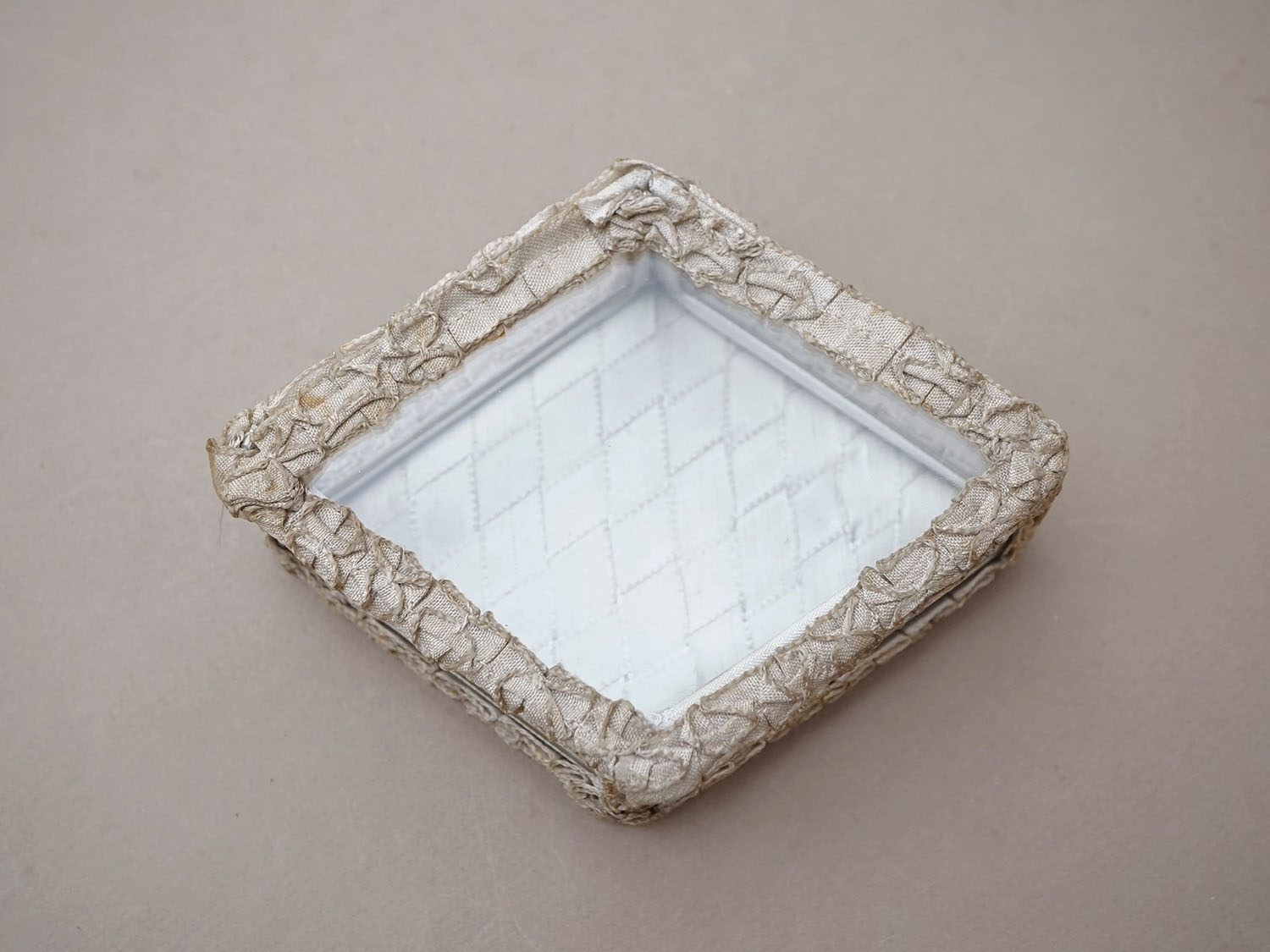 アンティーク リボンワークのジュエリーボックス スモーキーパウダーブルー ガラスケース