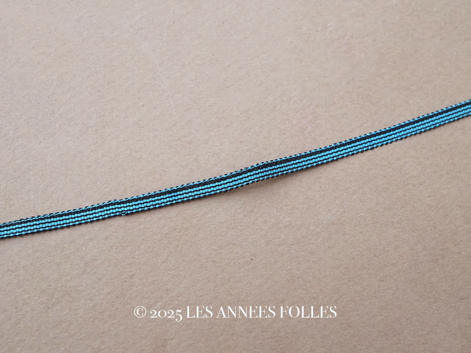 未使用 アンティーク 極細3mm シルク製 リボン ストライプ ブルー&ブラック [AM15853]