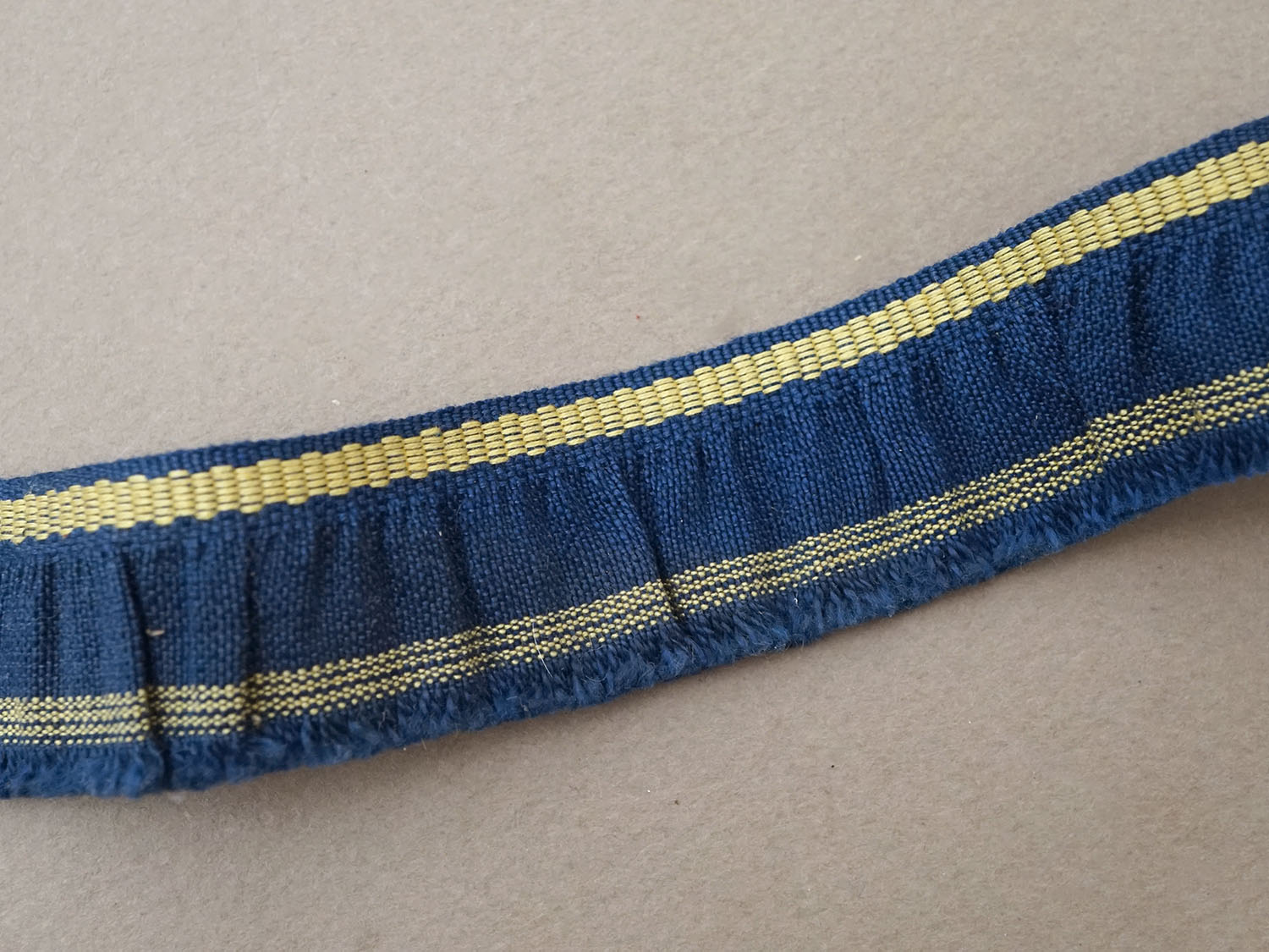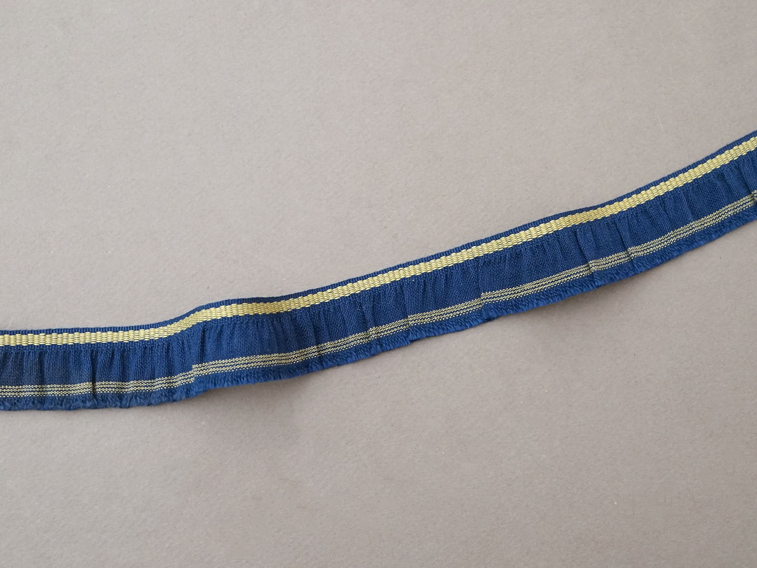 アンティーク ジャガード織 フリルリボン リネン製 インディゴブルー