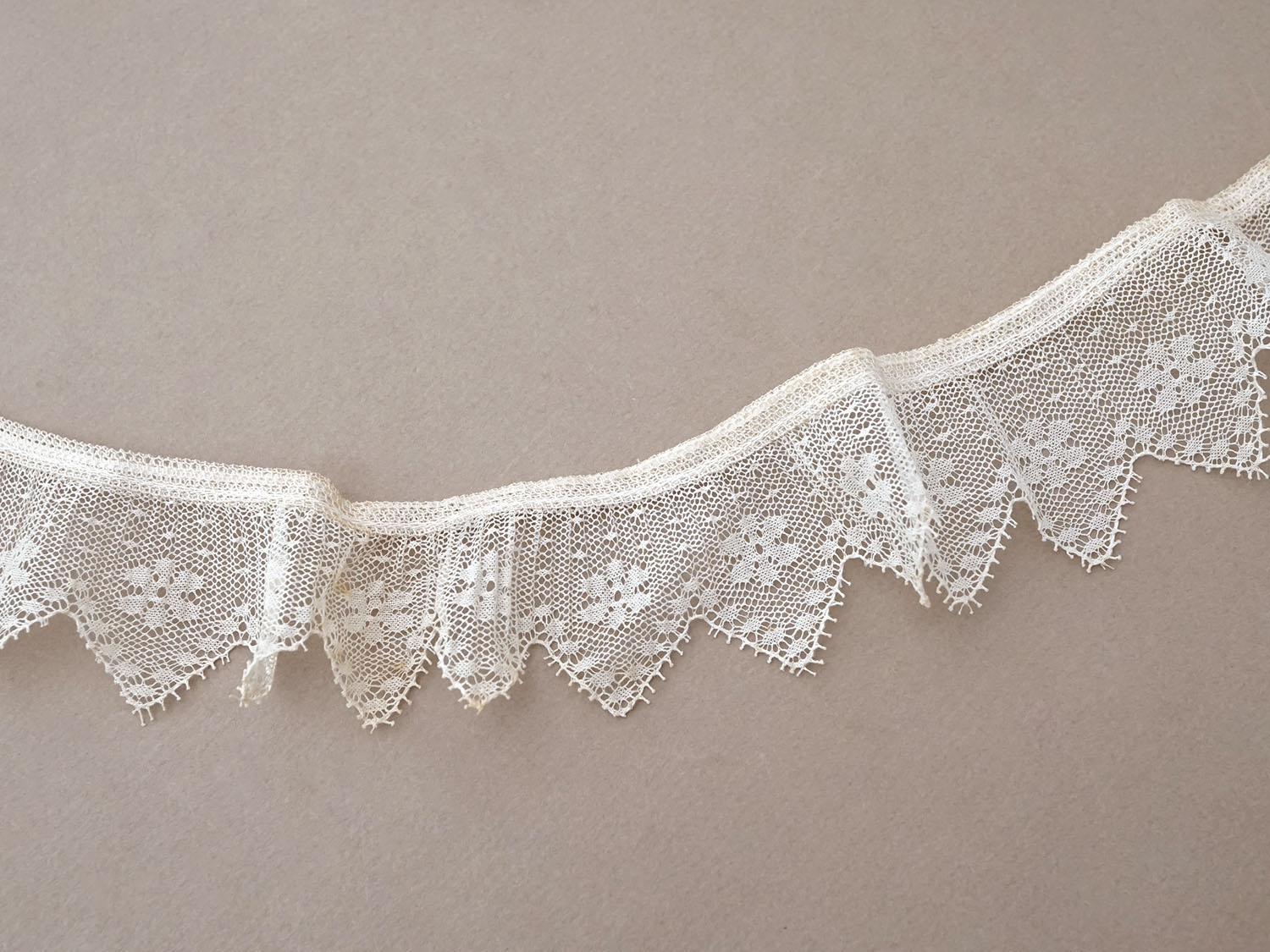 アンティーク プリーツレース 花模様 オフホワイト 75cm