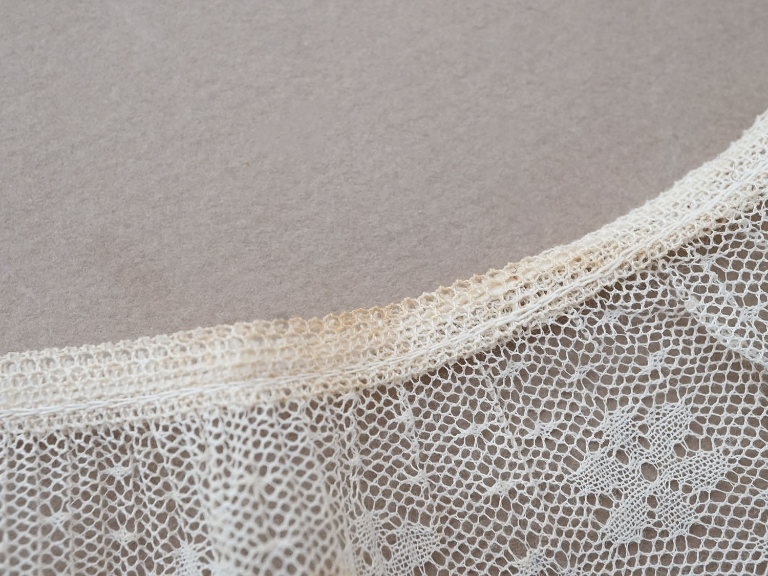 細かいプリーツが施されたオフホワイトのチュールレースです。