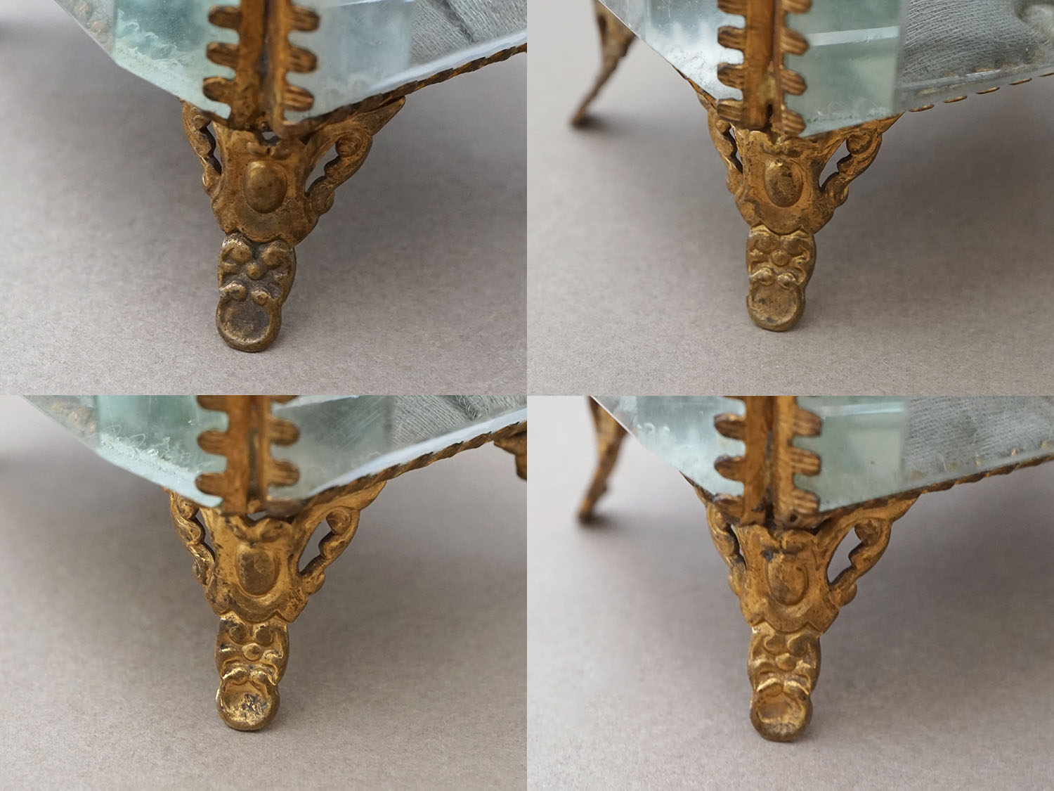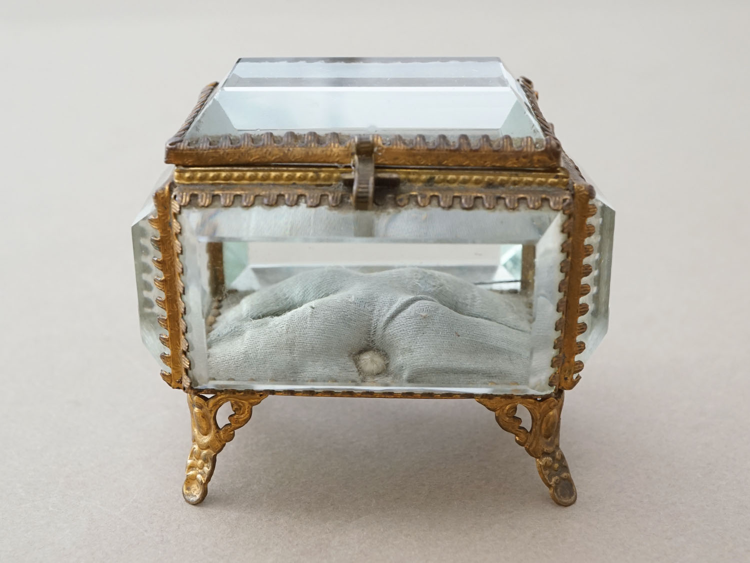 アンティーク ジュエリーボックス グレイッシュブルーのシルククッション