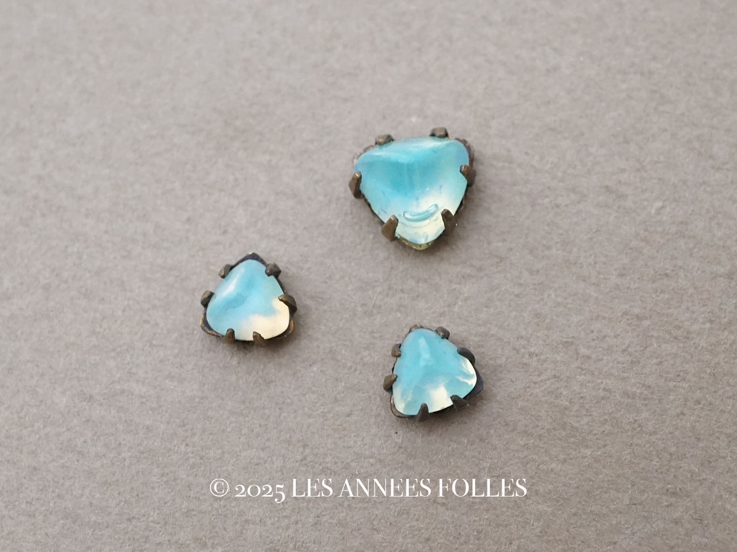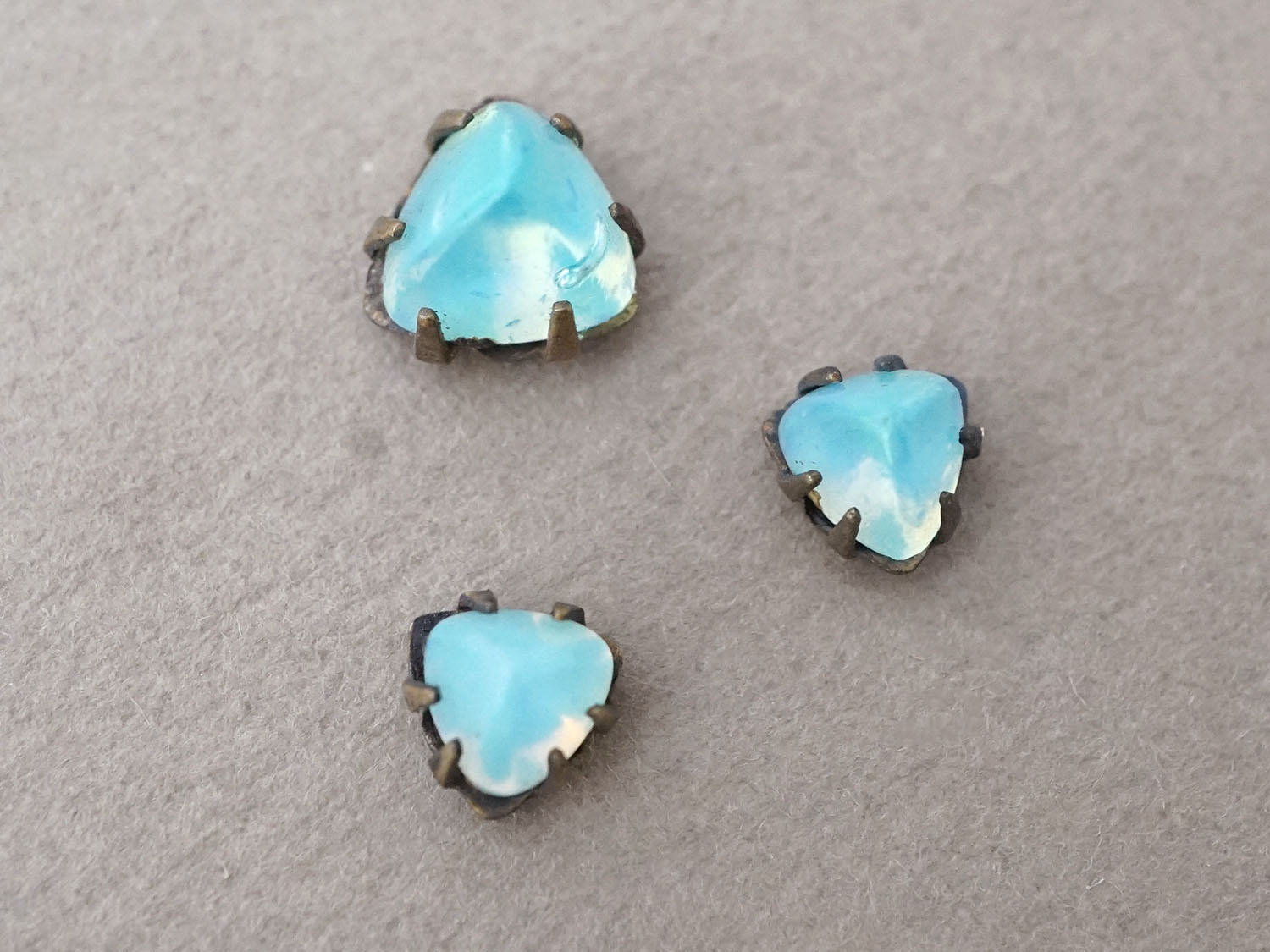 19世紀末 アンティーク グラスストーン 乳白色&ブルー 3ピースのセット ラインストーン