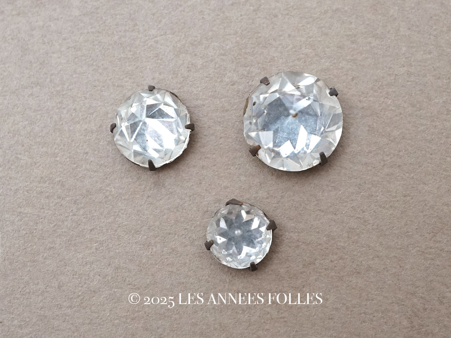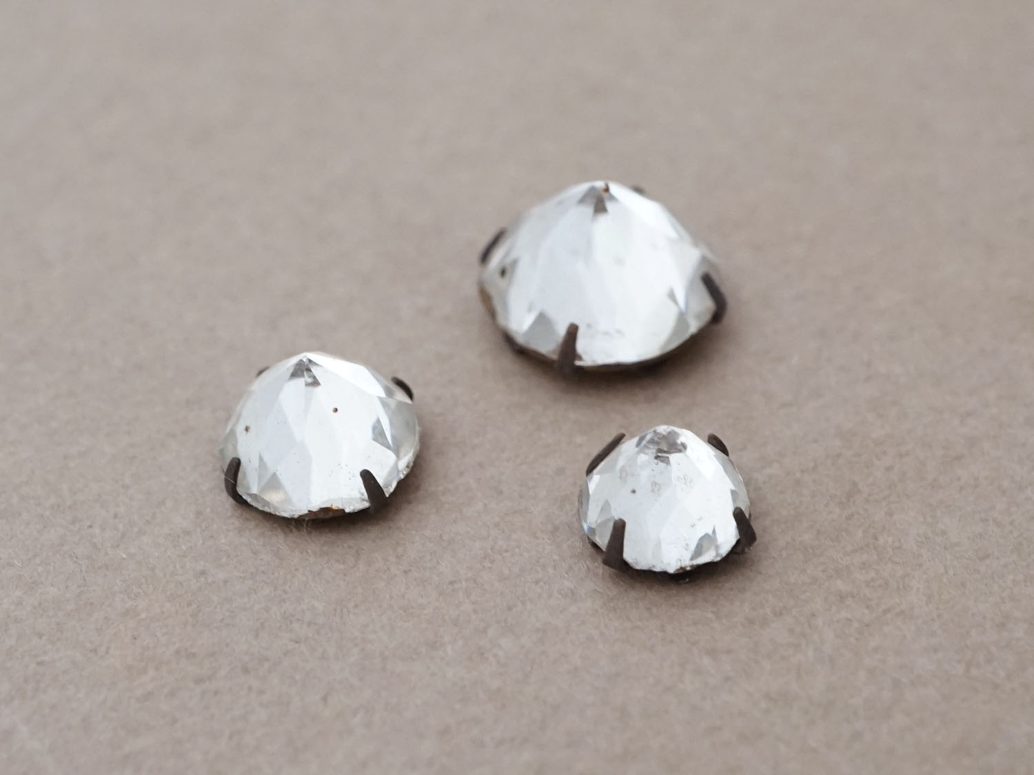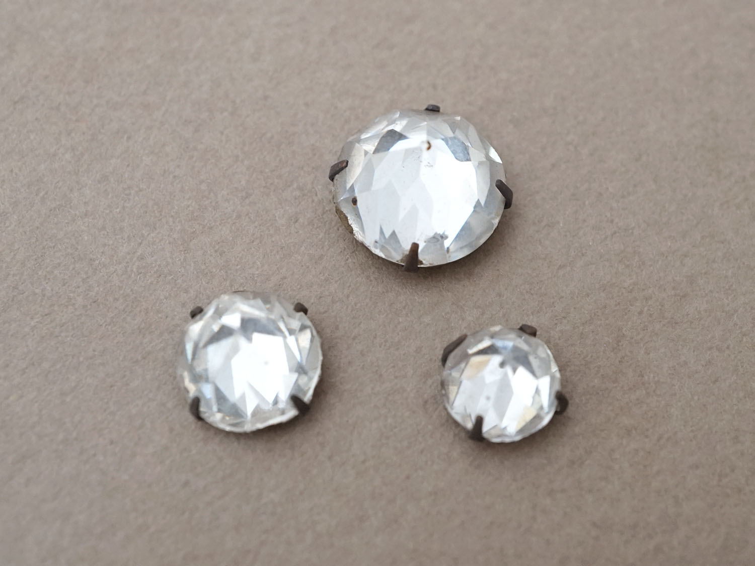 19世紀末 アンティーク クリア グラスストーン 3ピースのセット ラインストーン