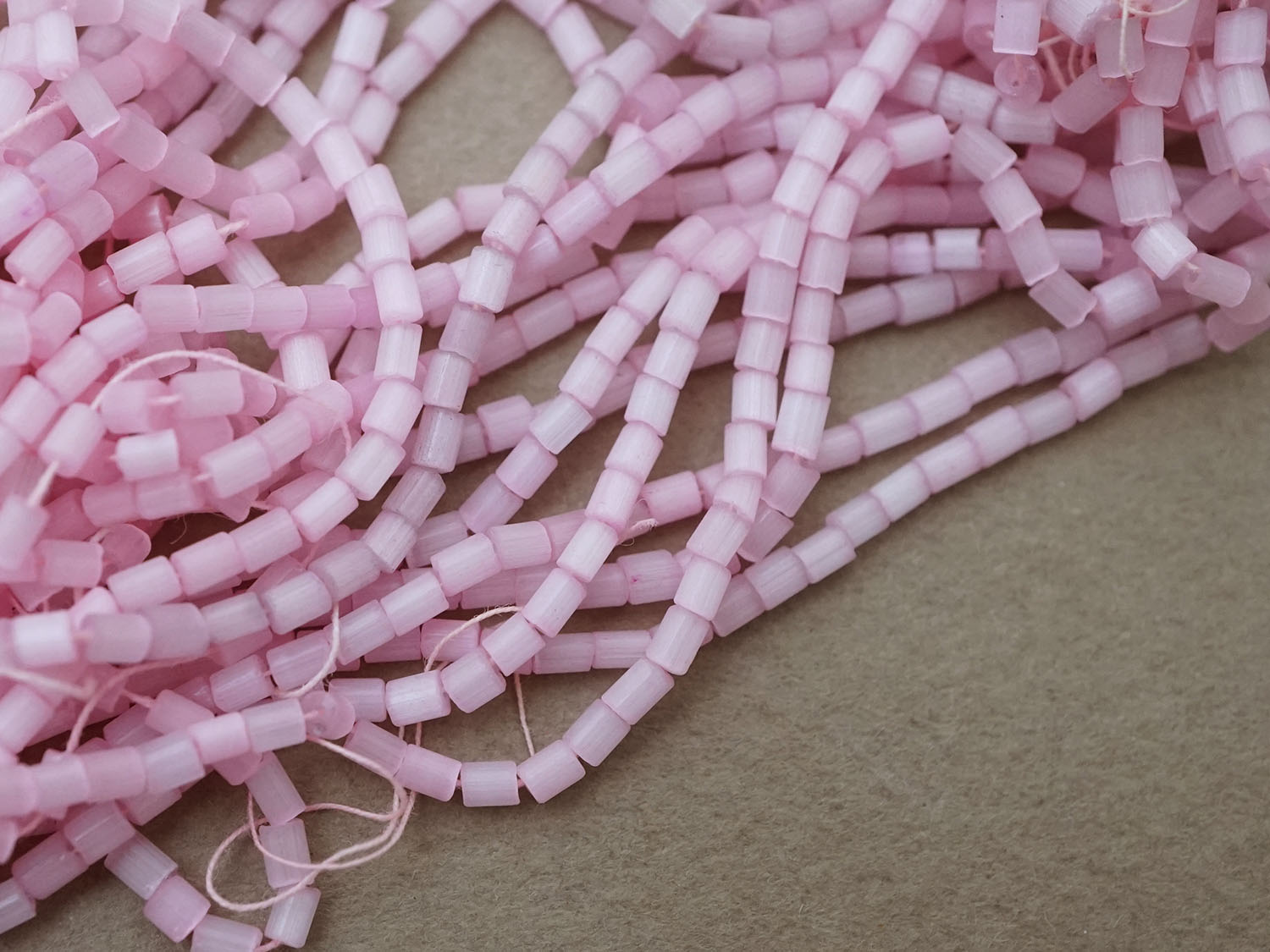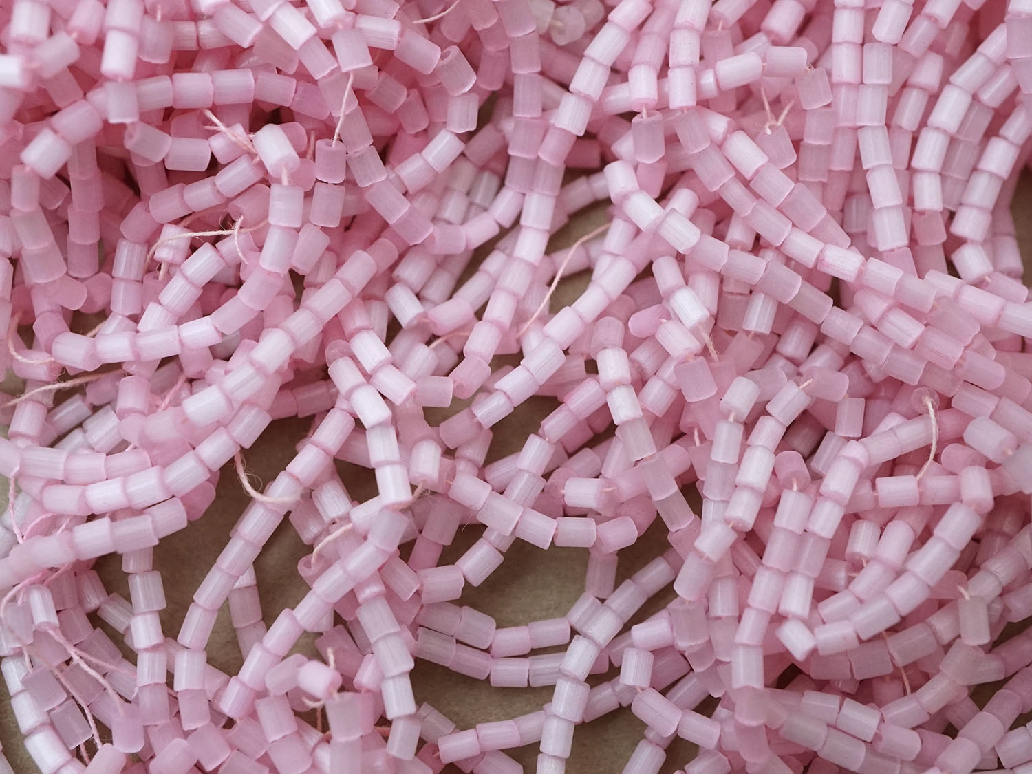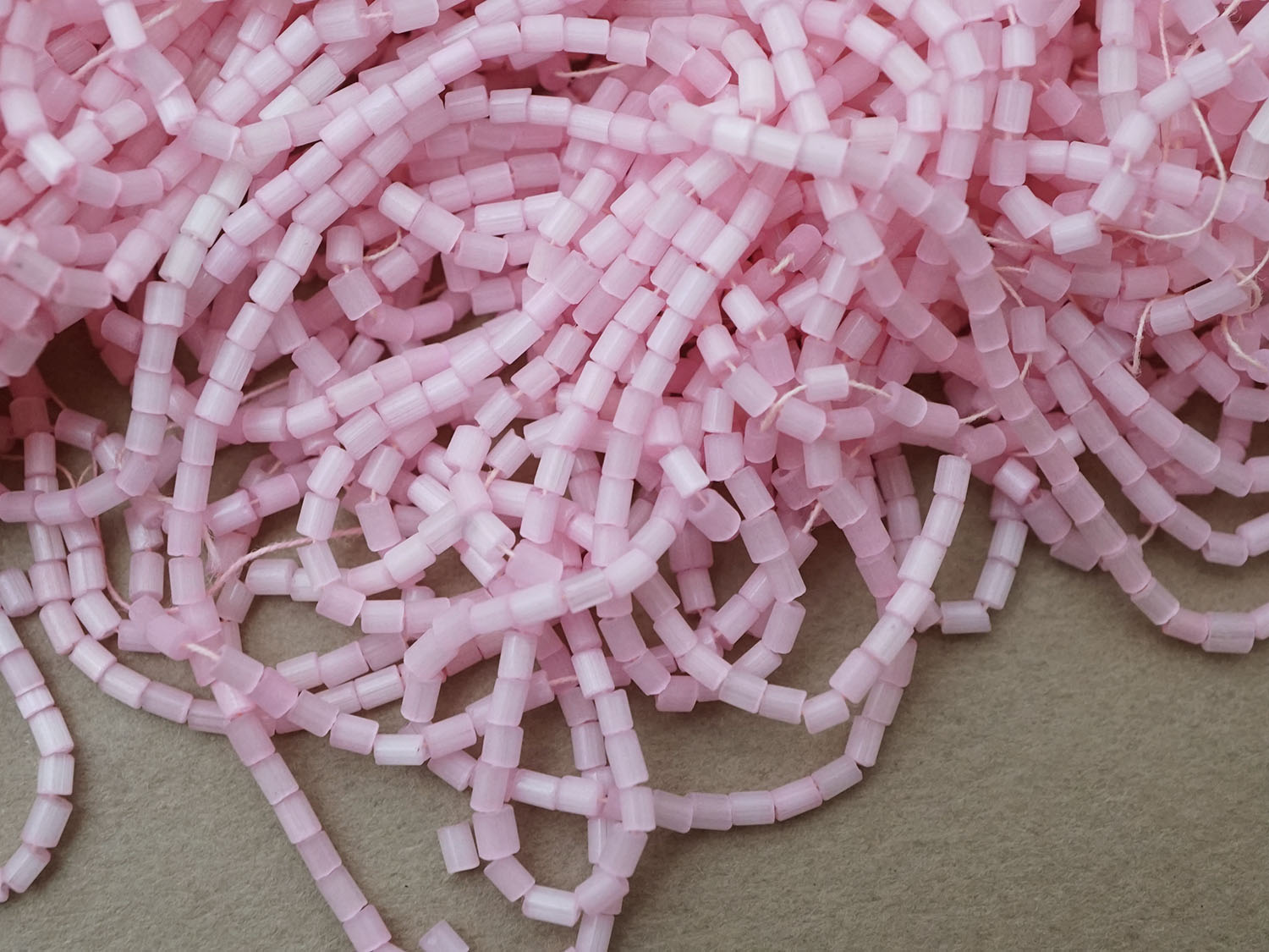 ガラス製でベビーピンクのサティネビーズ78gです。