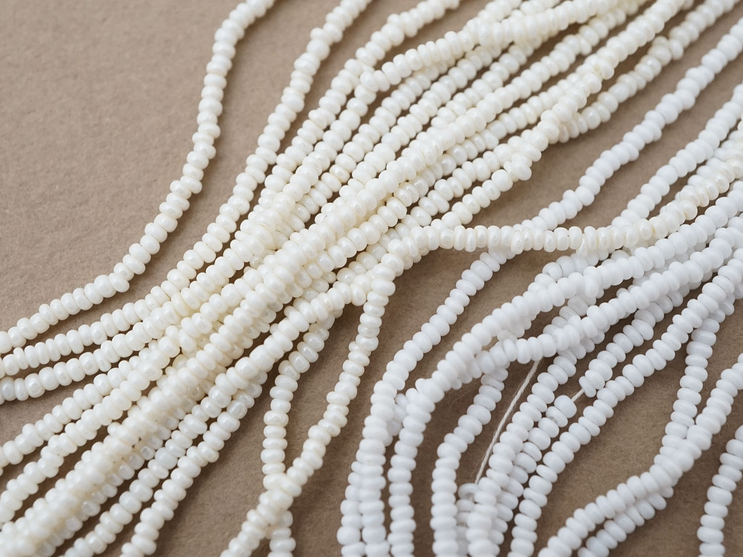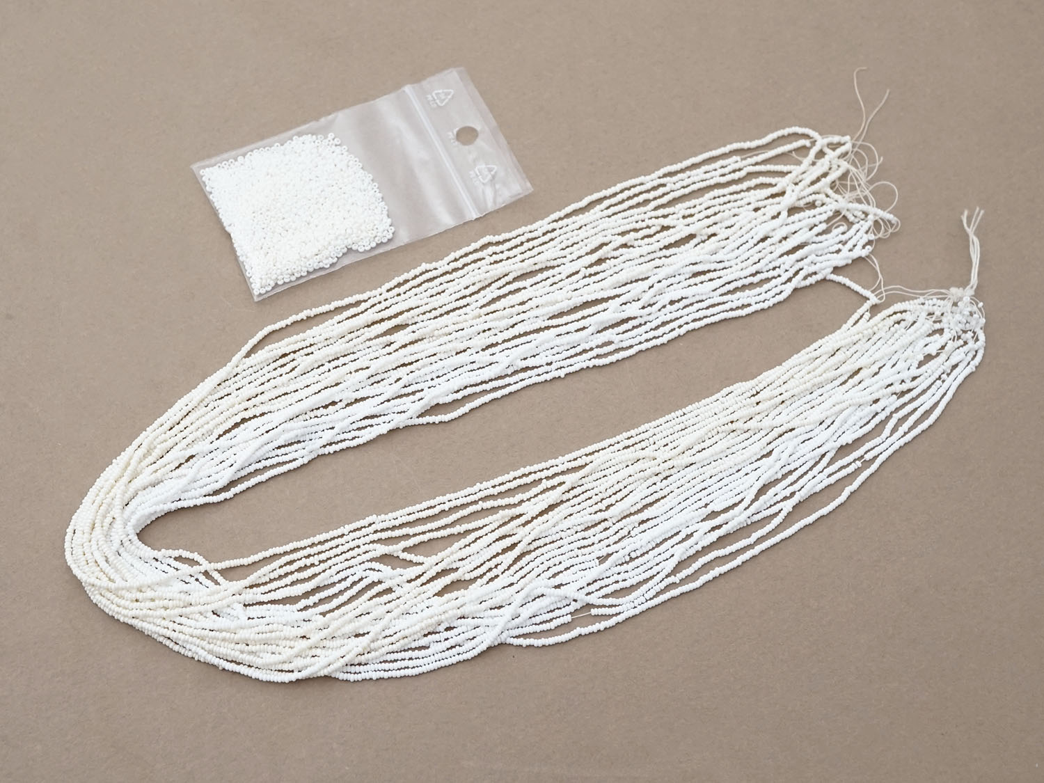 1cmに約12粒並ぶ極小サイズのホワイト&クリーム色のガラス製シードビーズ47gです。