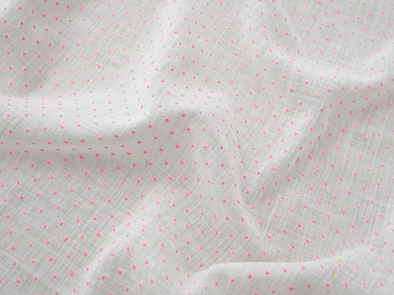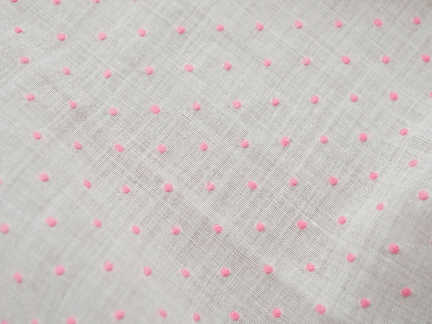 ピンクの小さなドットのふっくらした刺繍入り薄手のコットンオーガンジーです。