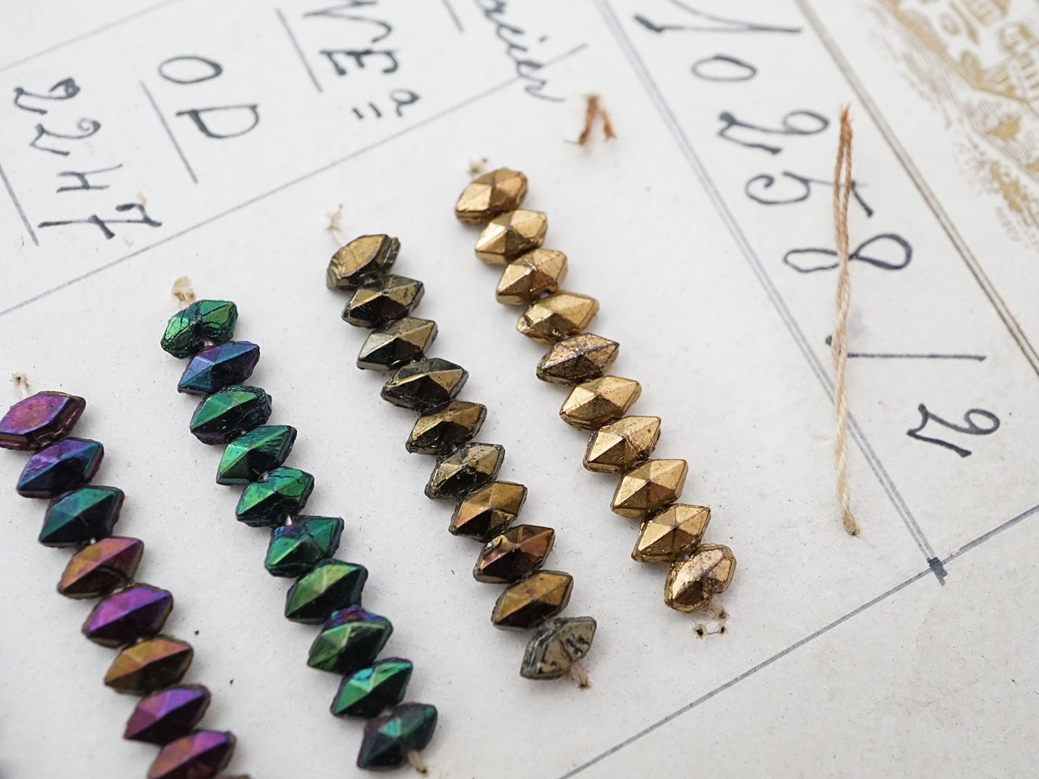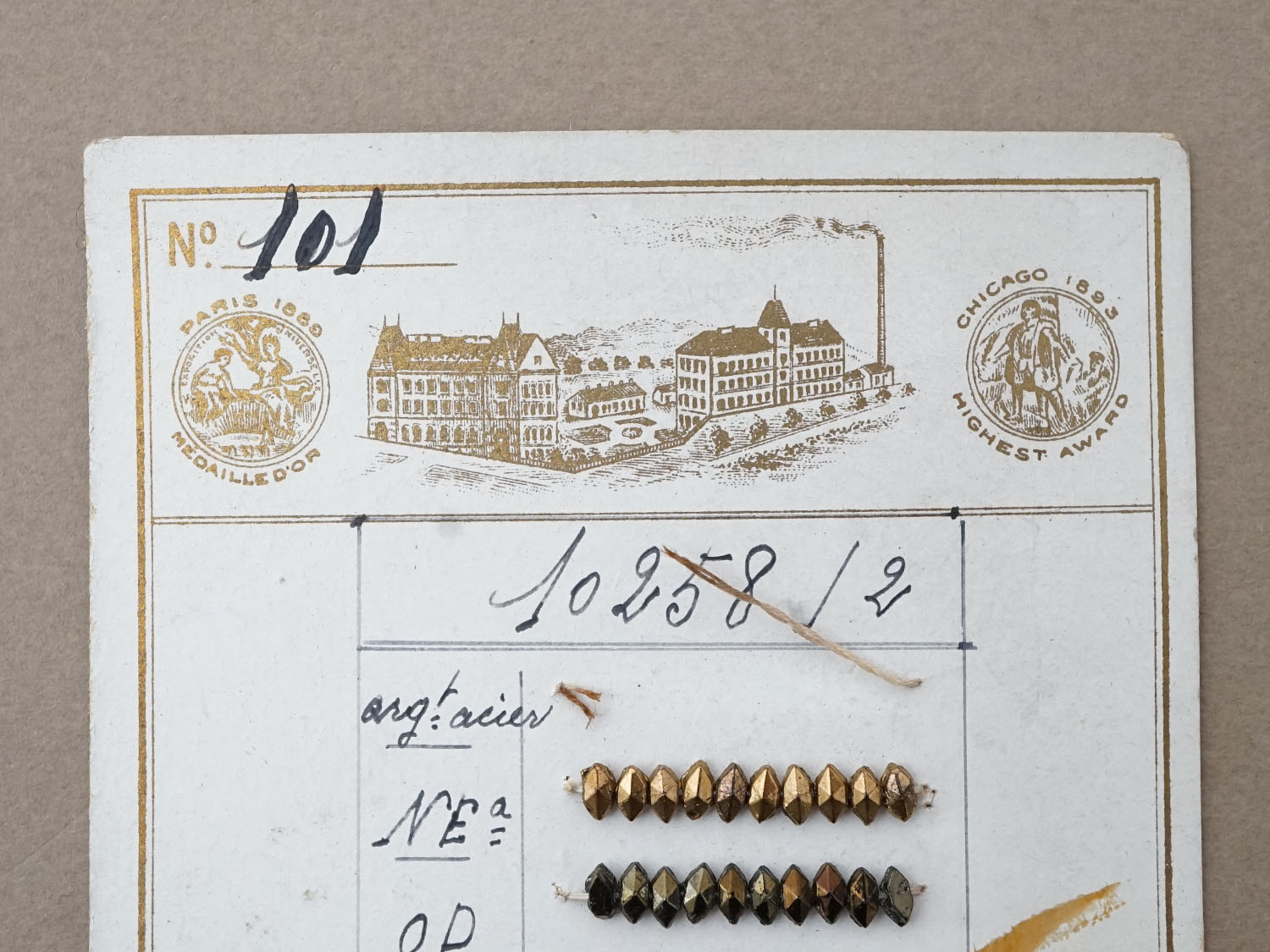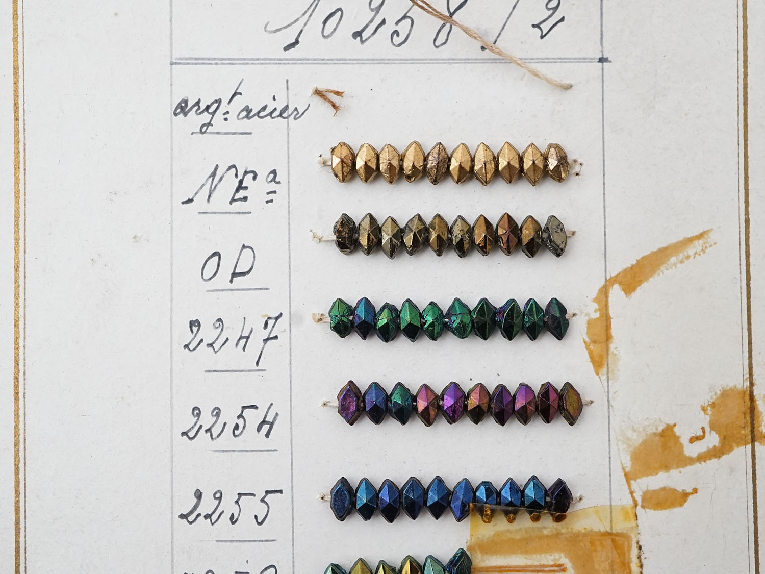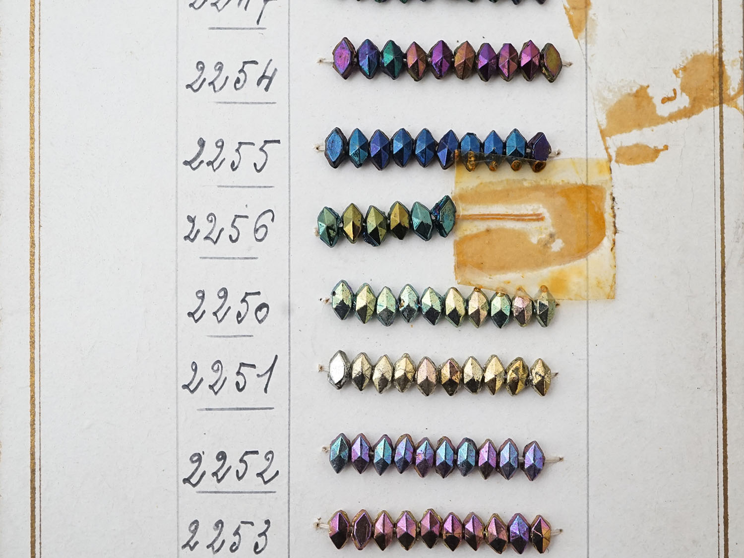 19世紀末、チェコのヤブロネッツのAS&JHJS社のガラスビーズのサンプラーです。