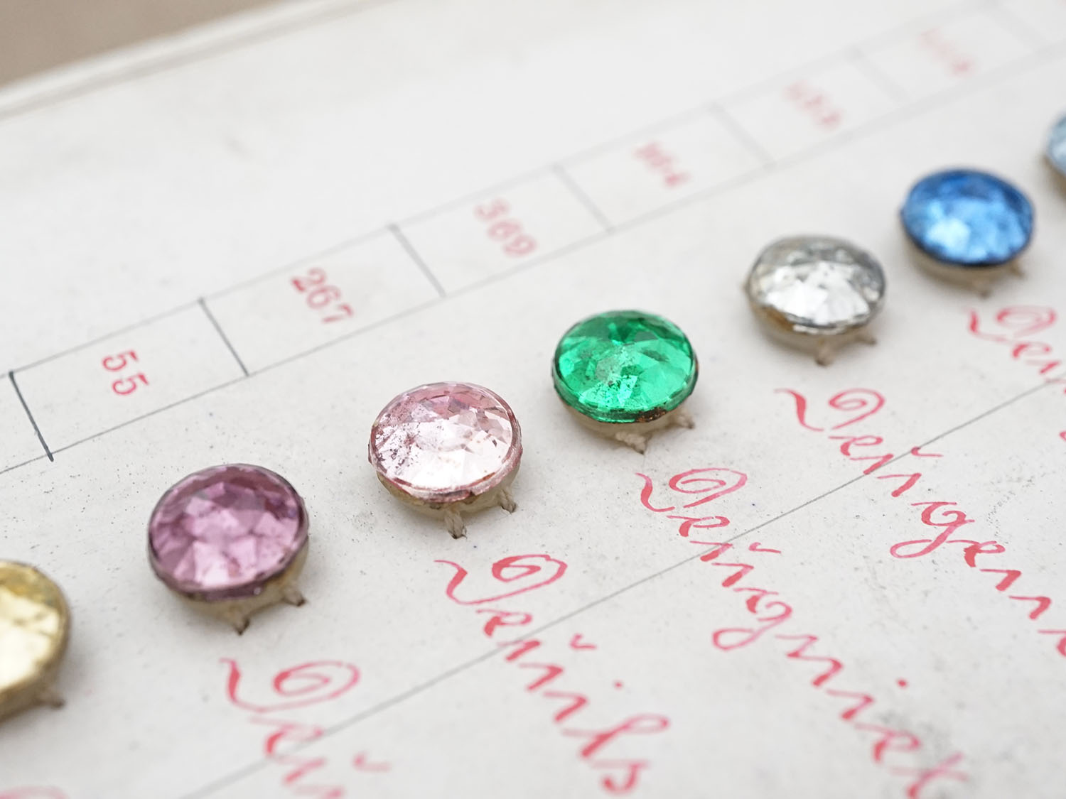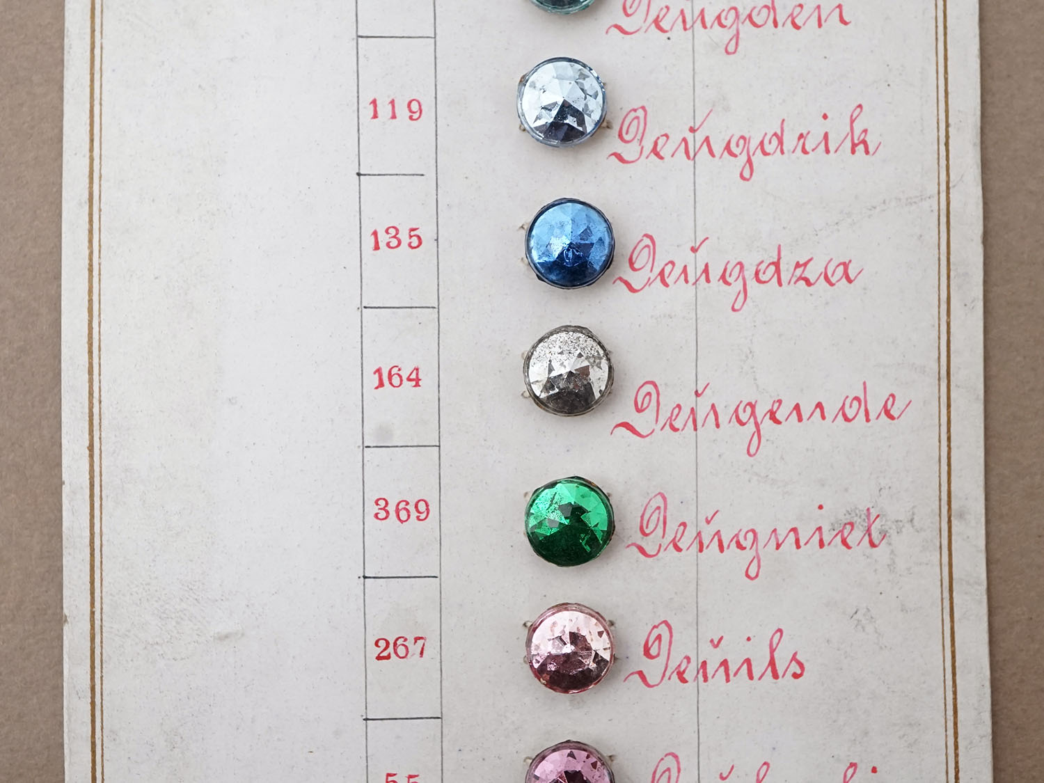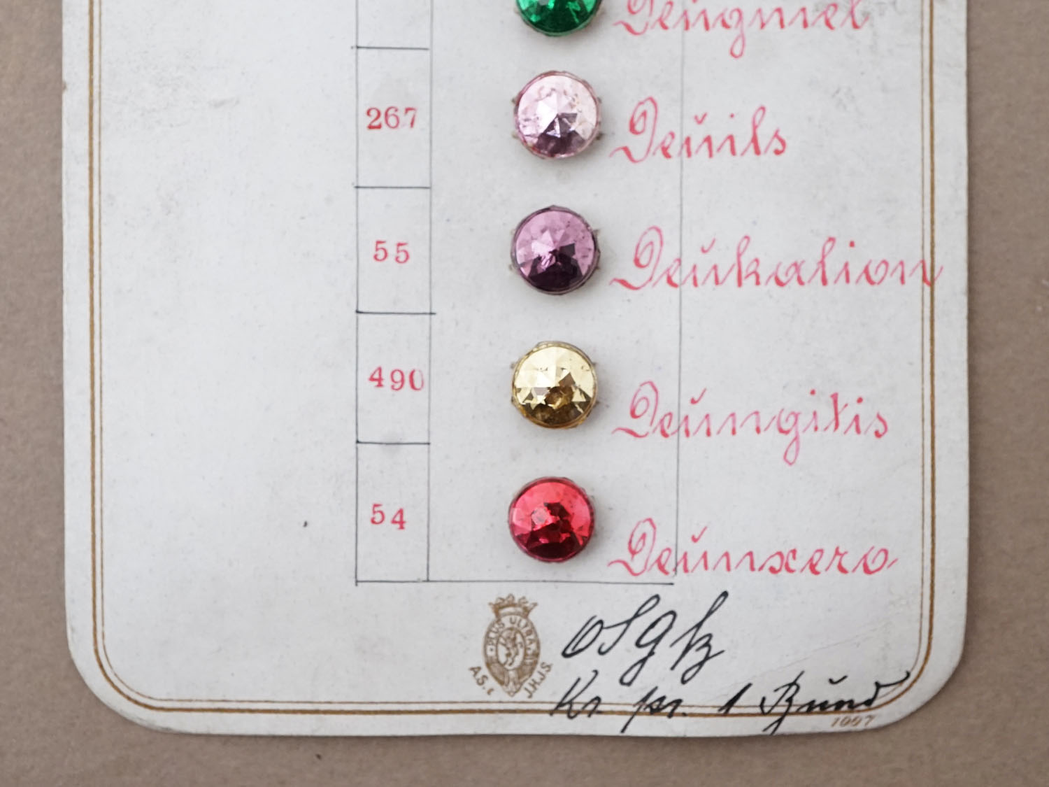 19世紀末、チェコのヤブロネッツのAS&JHJS社のグラスストーンのサンプラーです。