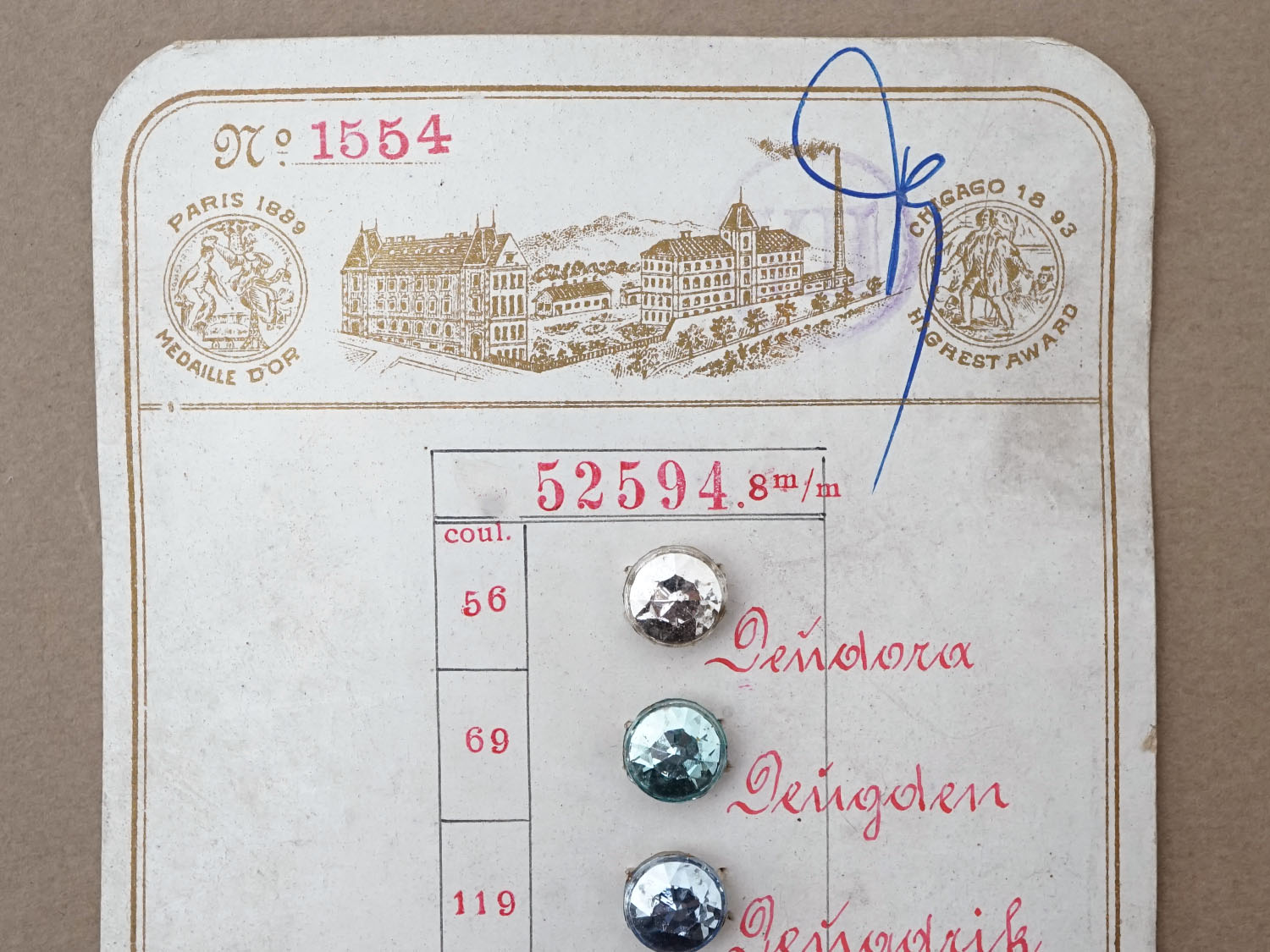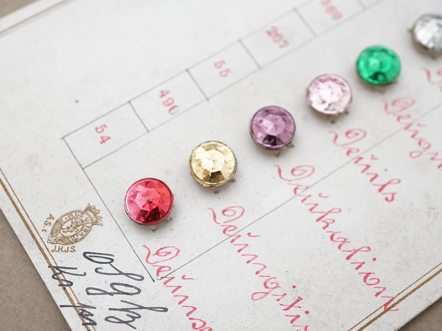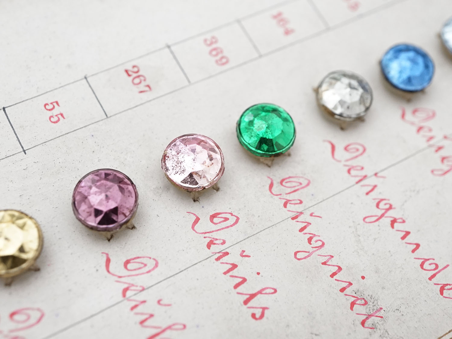 19世紀末、チェコのヤブロネッツのAS&JHJS社のグラスストーンのサンプラーです。