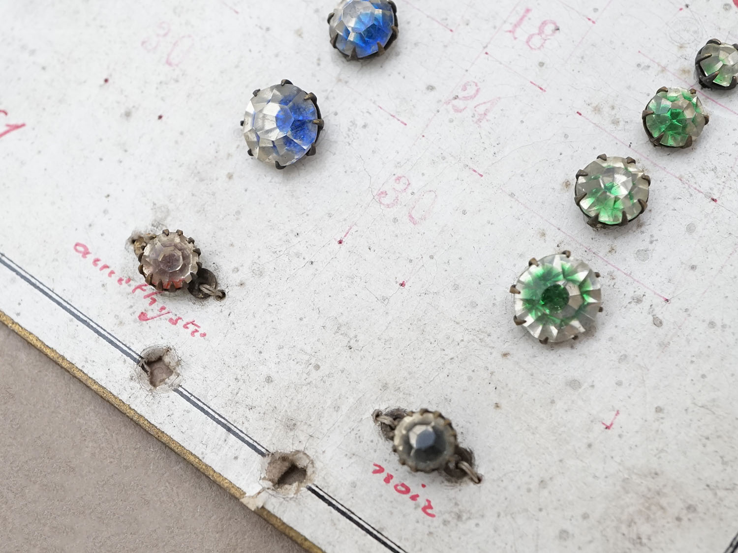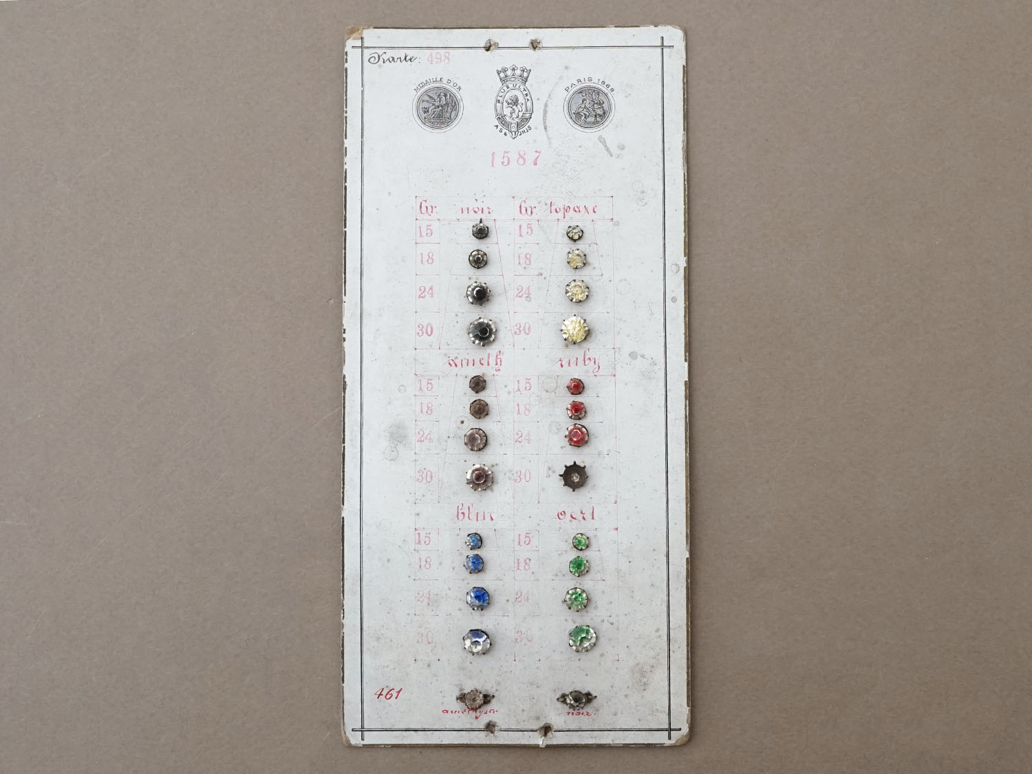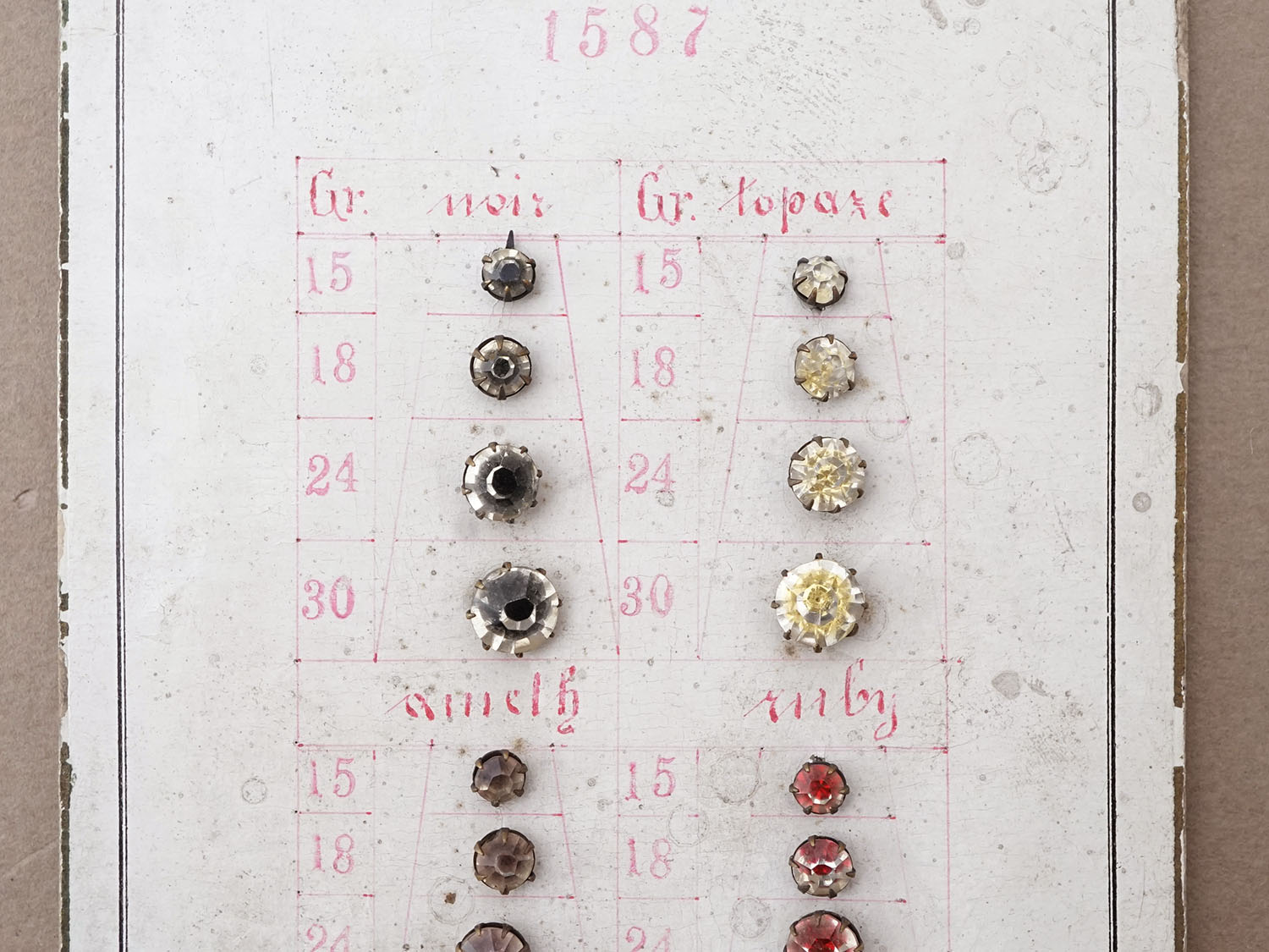 19世紀末、チェコのヤブロネッツのAS&JHJS社のグラスストーンのサンプラーです。