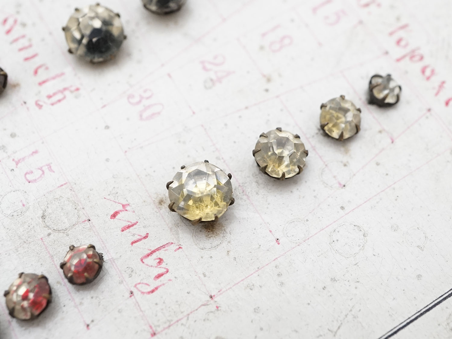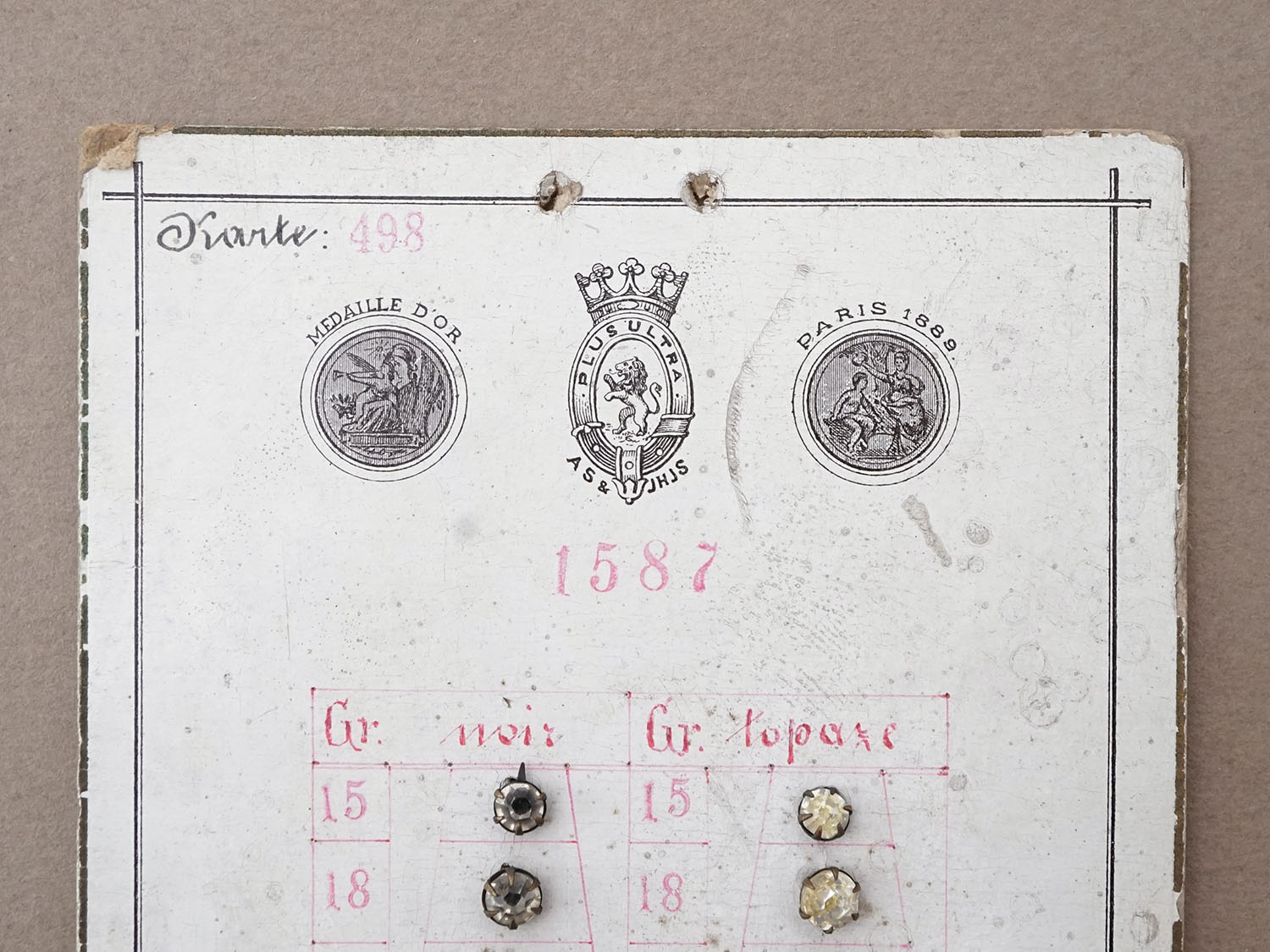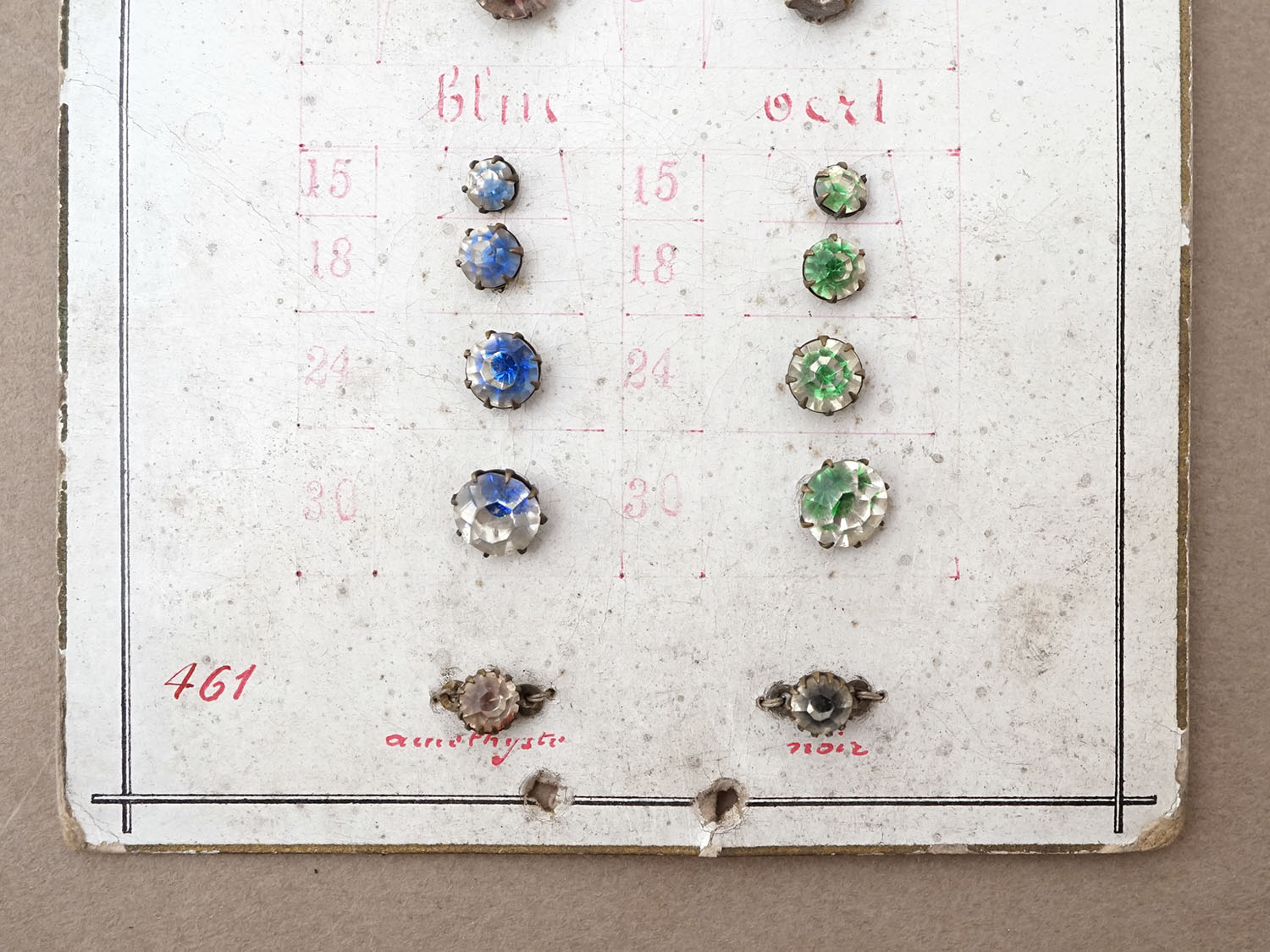 19世紀末、チェコのヤブロネッツのAS&JHJS社のグラスストーンのサンプラーです。