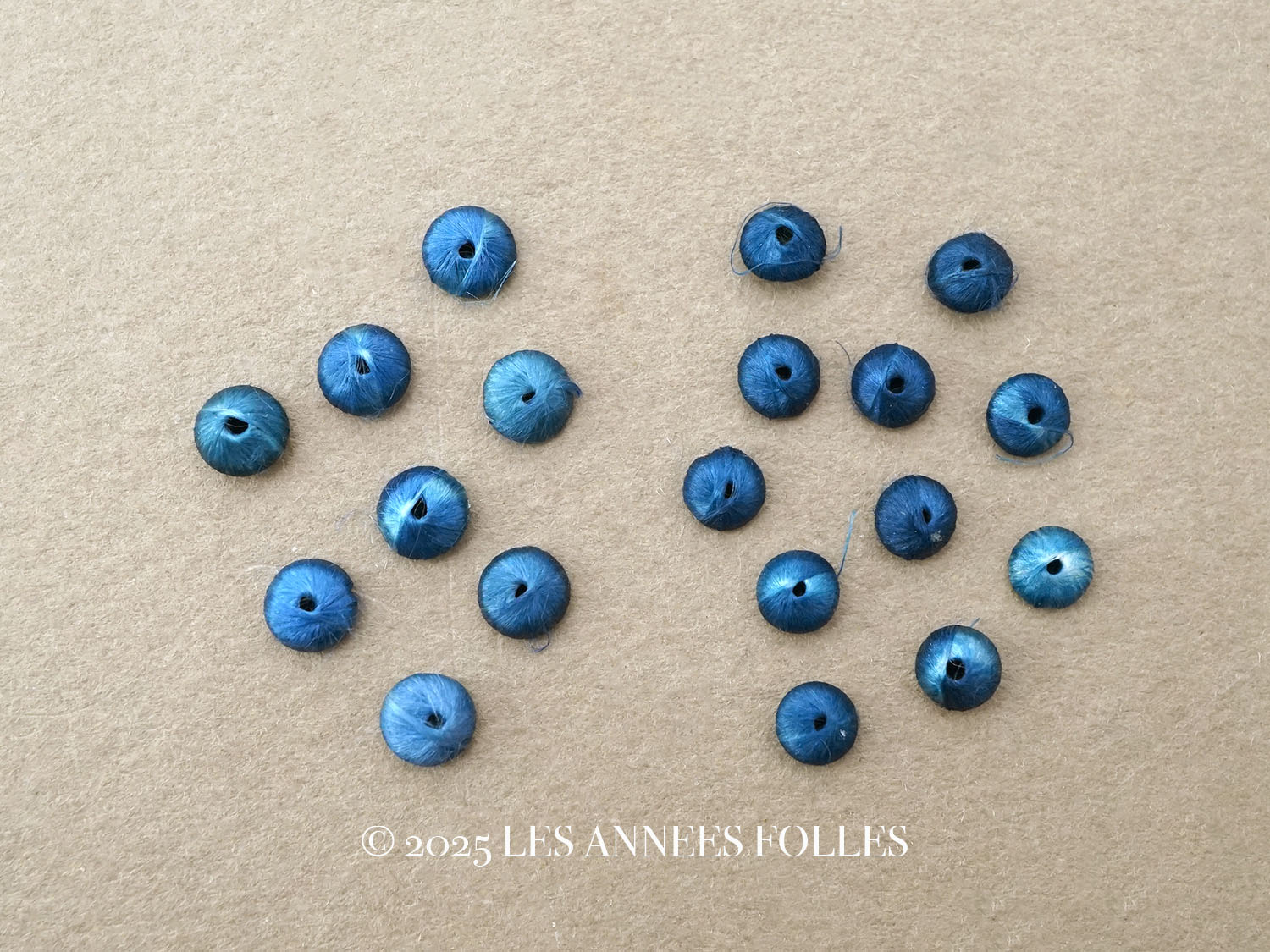 アンティーク シルク製 くるみボタン 極小 約5mm ブルー 19ピースのセット ジュエリーボックス用 ドール用