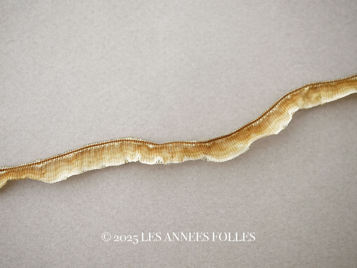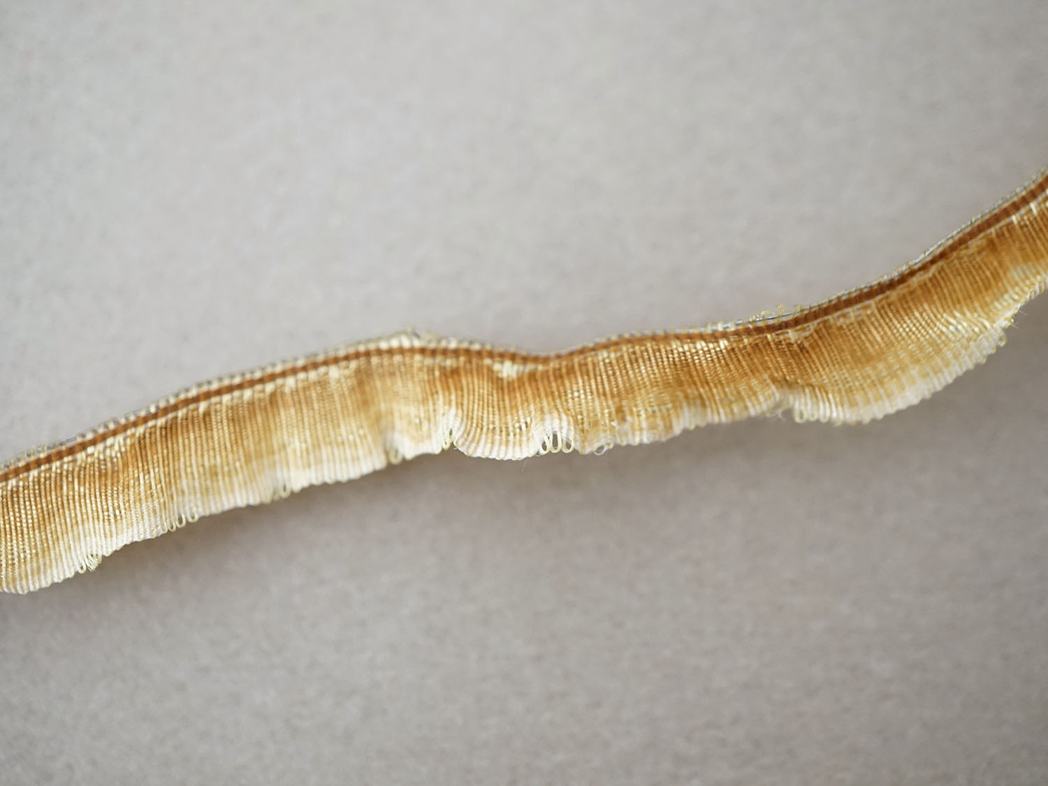 *蚤の市* 19世紀末 アンティーク シルク製 フリル付 トリム 4.87m 8mm幅 ブラウン&ゴールドのグラデーション