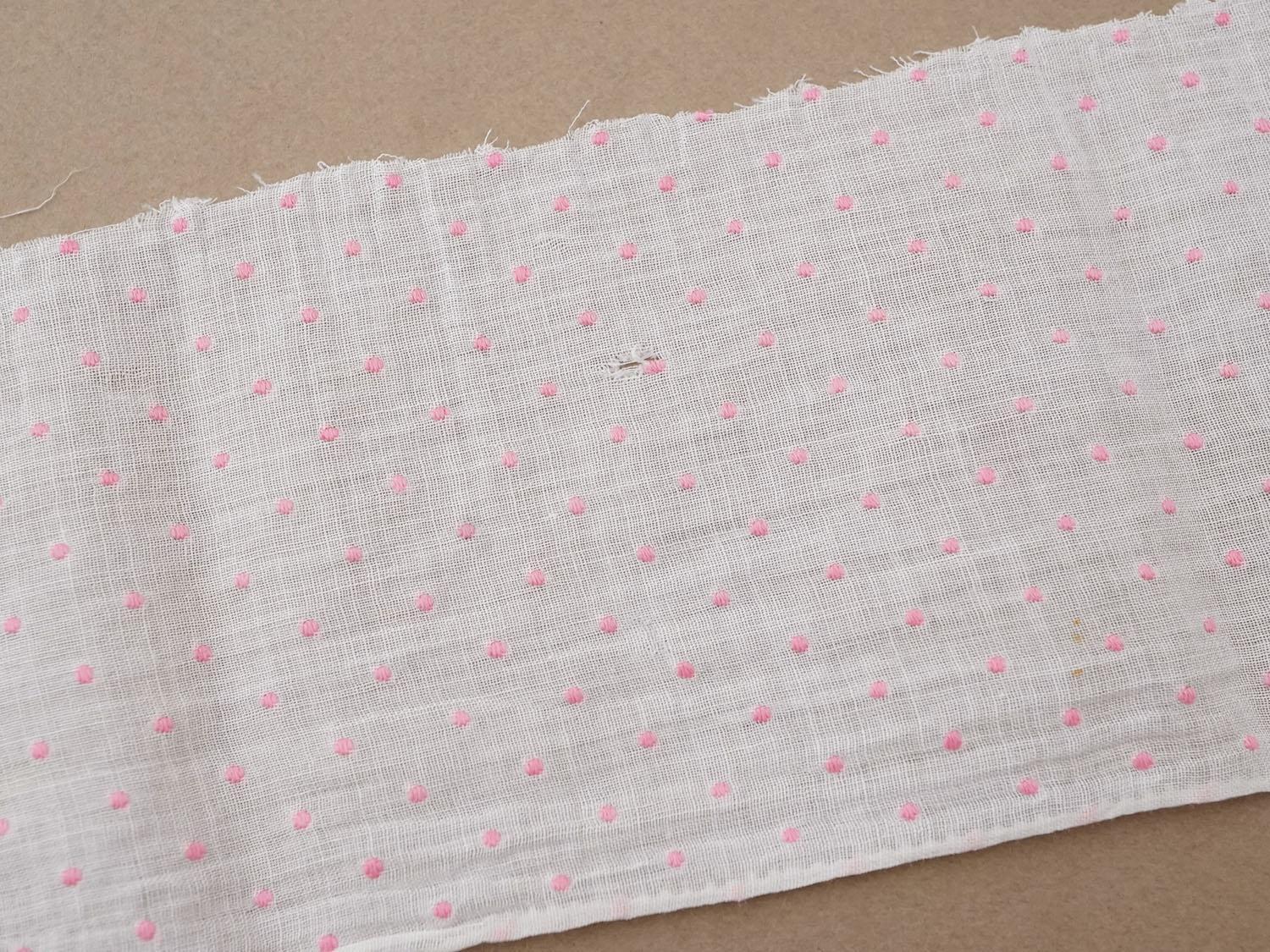 アンティーク ピンクの小さなドット刺繍入り コットンオーガンジー 6.57m ファブリック 生地