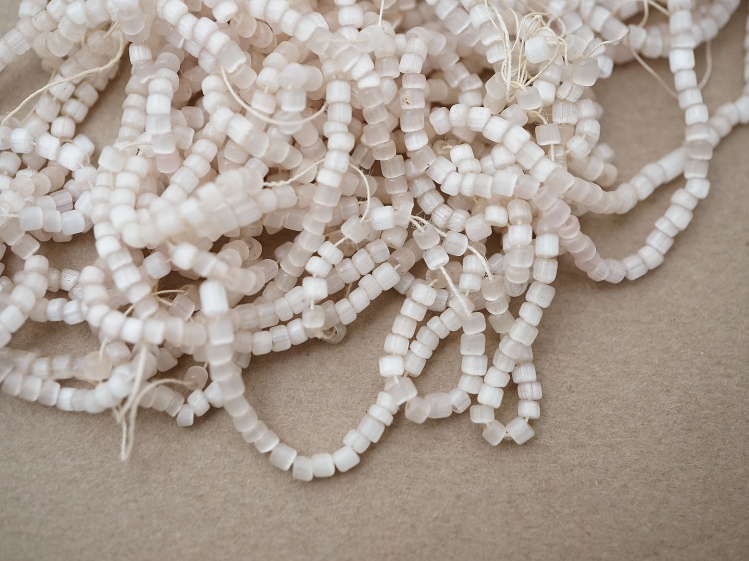 アンティーク ガラス製 サティネビーズ ホワイトピンク 14g 1cm=4.25粒